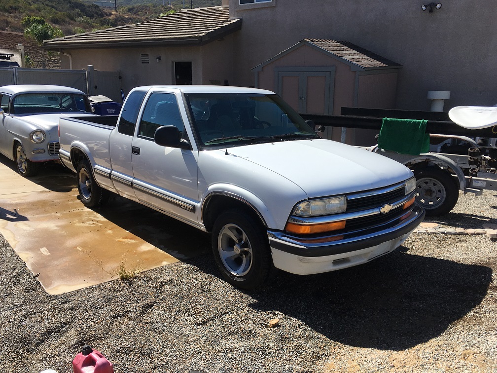 So I bought a LUV replacement a couple weeks ago...a 1998 S10 LS V6/auto ex-cab, 3rd door short box w/200K. I have been looking for a nice El Camino, a older truck or an S10/Extreme/ZQ8 equipped truck. I wanted something comfortable for a shop truck and errand runner....cheap and small. I needed something with a pick up bed to haul nasty stuff and motors/parts. I had sold my 73 V8 stepside LUV for 5K a few months ago, (write up in the forums) sure it had a V8/700R4 conversion....but lacked a lot of comfort, had no power steering, rode stiff, and still needed a lot of work. The interior was the biggest issue for me, very basic, stiff bench seat, no heater, (V8 conversion custom trans tunnel eliminated it) super expensive dash replacement (I was quoted $1,400 from just dashes) and non existent new replacement parts. Yes I could have upgraded and revised everything to make it better but I didn't think it was worth it. I try not to put too much more in a vehicle than I can sell it for. (Not including my daily work driver.) A lot of the guys that race your LUV these are not issues, like a daily driver may be. Looked at a nice old 72 El Camino roller, for $1,200.00 good deal less motor and trans though had a little rust....I don't need another project.. What I really need is a small comfortable shop truck. The 78-87 El Caminos seem to be going up in value here. Smog is super tough on a carbureted 80's vehicle. I found a guy advertising a 98 S10 extra cab 4 cylinder and 5 speed for $1,500.00, 4 miles away. I didn't want a 4 cylinder but hey the price was right.....he said it had a misfire too...uh oh.... When I got there it was a V6 Vortec and an auto...wow, it would have sold quick for 1500 with the V6., but no one came looking....except me, bought it for $1,250.00 drove it home too. Needed an alignment, couple tires and shocks. It runs pretty good, shifts great for 200K, but has a misfire code so It probably needs a new spider/mpfi upgrade, easy to do and about $250.00. I'll re-nu the non op and use it as is for a while. It has a really nice interior, buckets, console 3rd door and even a nice JVC stereo...wow score!!