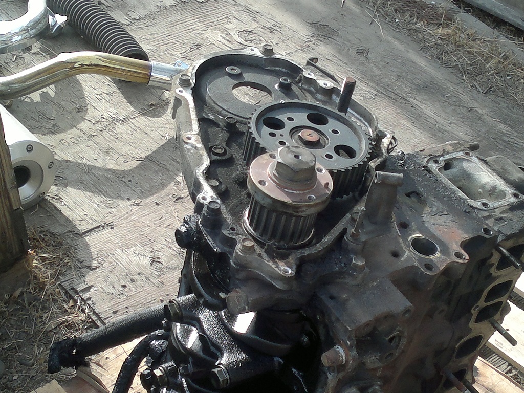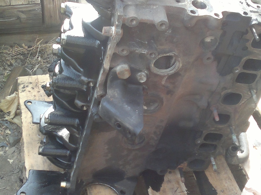 and heres whats left of the original engine (PS - aside from what we need to get this pup running, if anybody needs anything! i think it threw a rod and/or a piston but should still have some good parts):