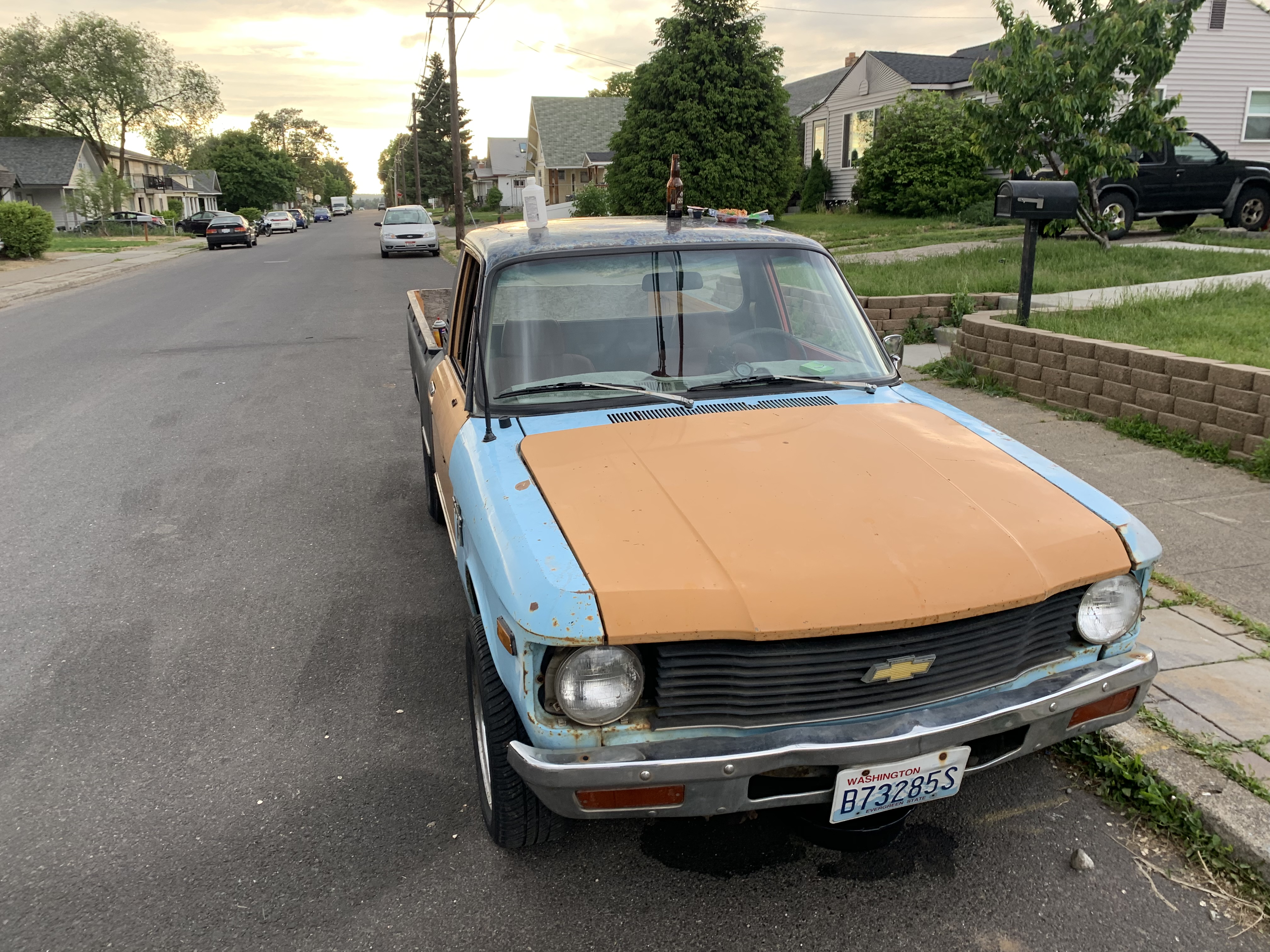 That is a true conglomeration of Luvs there. The front end is all 1980 with the bumper and headlights being correct. The dash seems correct. And the carb is on the correct side of the engine to be the hemi-head it's supposed to be.
