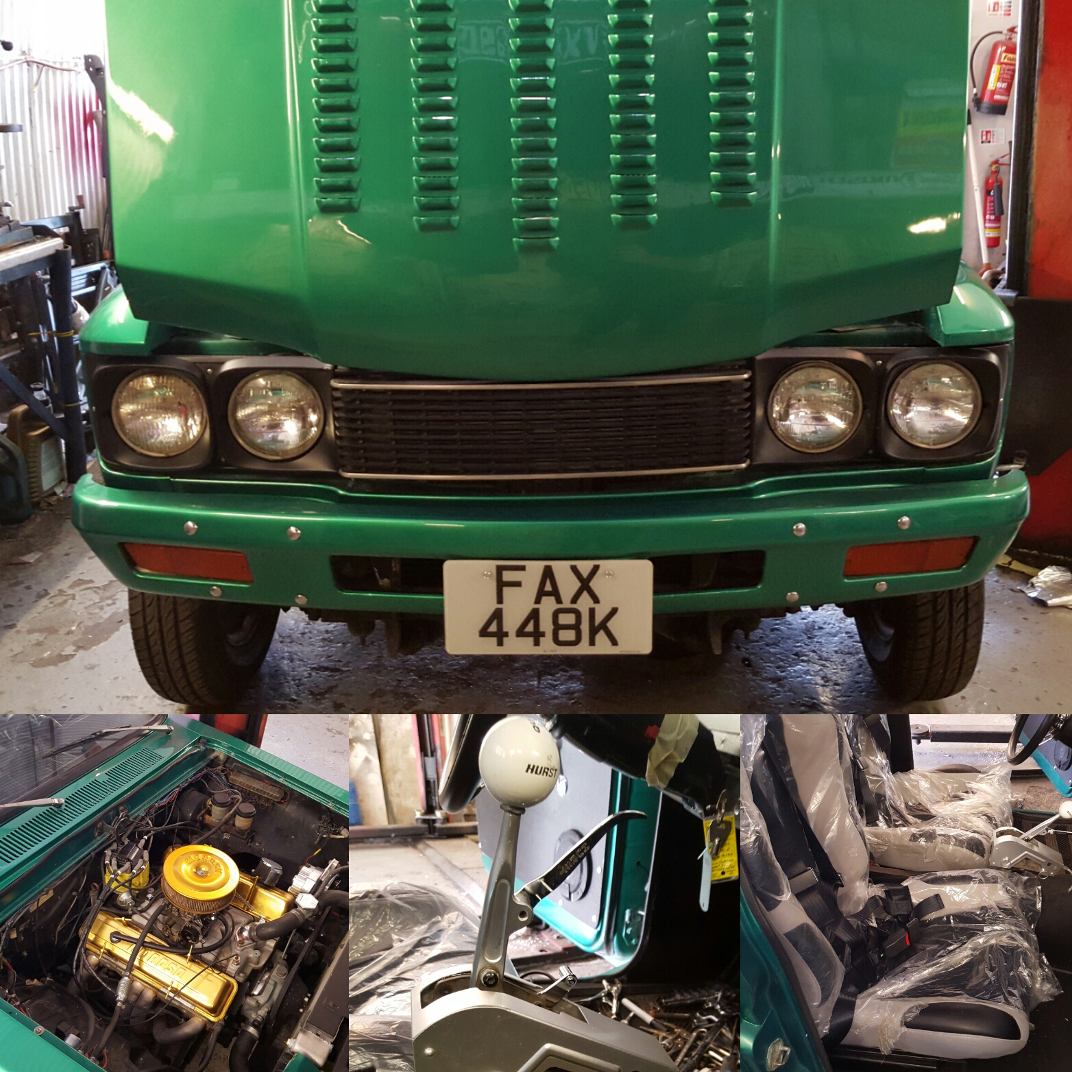 It has SBC, th350 gearbox, Ford 9 inch rear axle, aluminium radiator, rear bed cover.