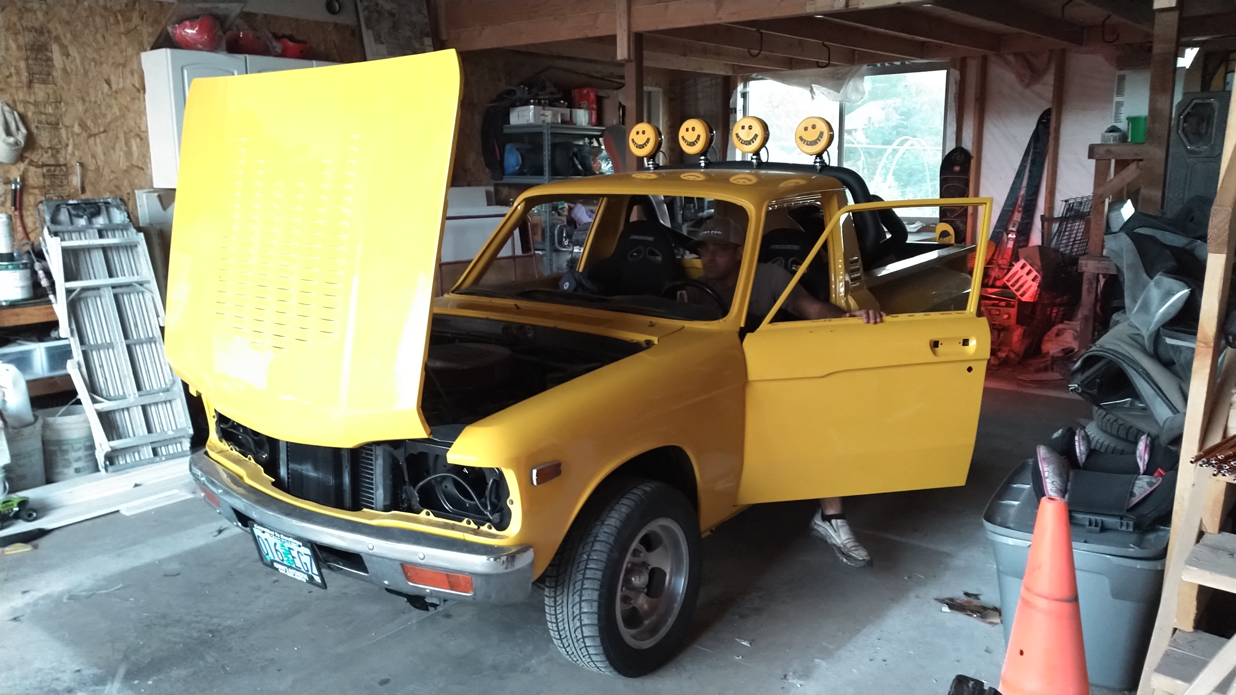 1976 Luv with a 383 and turbo 350. The previous owner passed away in the middle of the build, his wife kept it in a barn for 10 years in hopes of finishing his work. After deciding it was to much work she posted it on marketplace where my wife saw it and said look at this cool truck! The paint was done at the local D&S auto body shop, and the motor was done by the Chevrolet dealership in the Dalles Oregon. I’ve seen a few pictures of this same truck in red on Pinterest, if anyone has any other information on this truck please share! I plan on finishing it up and displaying it at the WAAM museum in Hood River Oregon this summer.