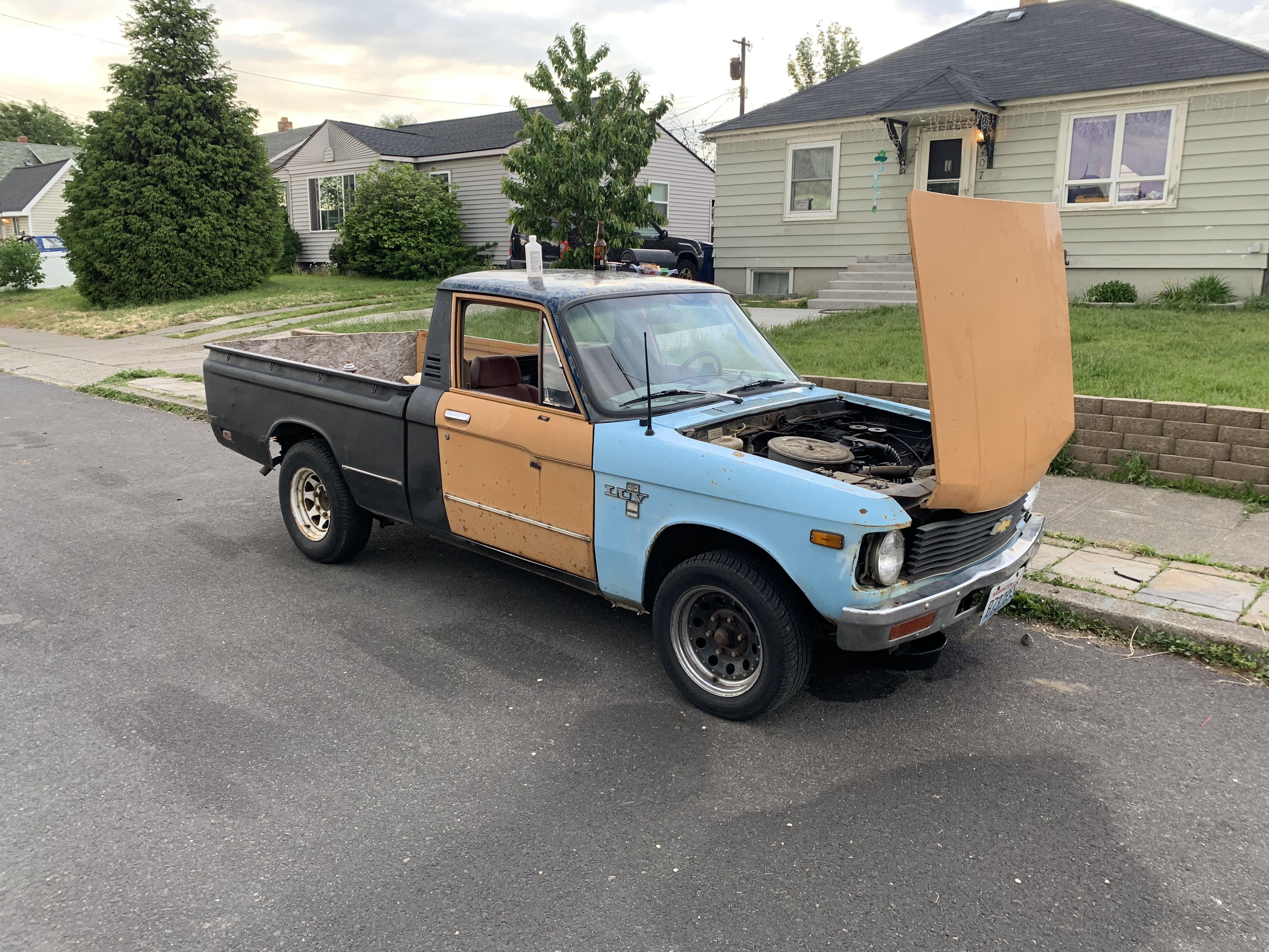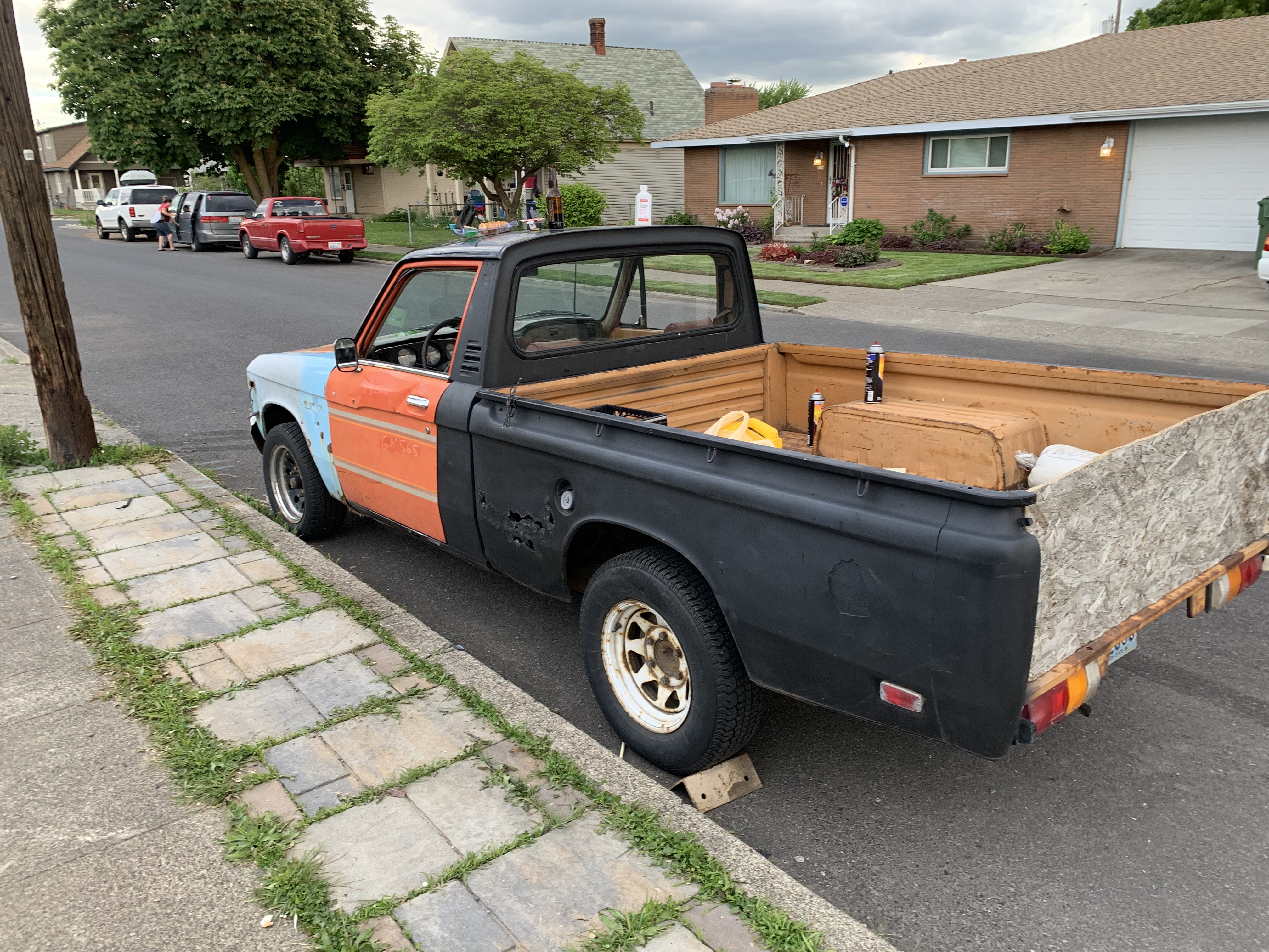 That is a true conglomeration of Luvs there. The front end is all 1980 with the bumper and headlights being correct. The dash seems correct. And the carb is on the correct side of the engine to be the hemi-head it's supposed to be.