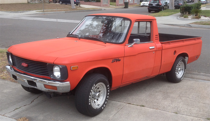 I wasn't going to start a thread for this truck but it looks like I am going to hang onto it so what the heck. I haven't had a stock Luv since 1983 so the G180 is something I am not that familiar with. I didn't know much in the 80's about working on cars and trucks, I mostly drove the crap out of them. I stumbled on this truck on Craigslist and it hadn't ran in 2 years but was all there. A young guy owned it and said he had replaced the fuel pump and filters and couldn't get it to run anymore. A mechanic didn't help, so it sat. The motor is supposed to have been rebuilt and the clutch was replaced also. It came with a spare G180 that also looks to have been rebuilt at some point too. I charged up the 2 year old battery and poured in some gas and she fired up then died. I found fuel got right up to the carb but none was getting in the float bowl. Using the forum I found the thread about the fuel inlet valve sticking. 5-6 taps to the inlet valve and she fired up without a splash of gas. I have been driving it up and down the street for the last week or so and it runs like a top. All it needs at this point is tires and a smog check. I found a ton of receipts in the glove box from the owner before the last guy for a new trans and clutch, paint job (1999) and interior. The paint looks like my blue one did when I got it so I think I can polish it out a bit. It is a Maaco paintjob and it is a thin coat of paint. I did sell the perfect rear bumper to lower my purchase expense but I have an old dirtworks bumper for it on my trailer. So far it is fun to play with and seems like a pretty good truck to work with.