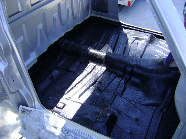 how the floor is sealed top and bottom . there well be no more rust ever . used por 15 then herculiner on the inside of the cab and por15 and ruberized undercoating on the bottom
