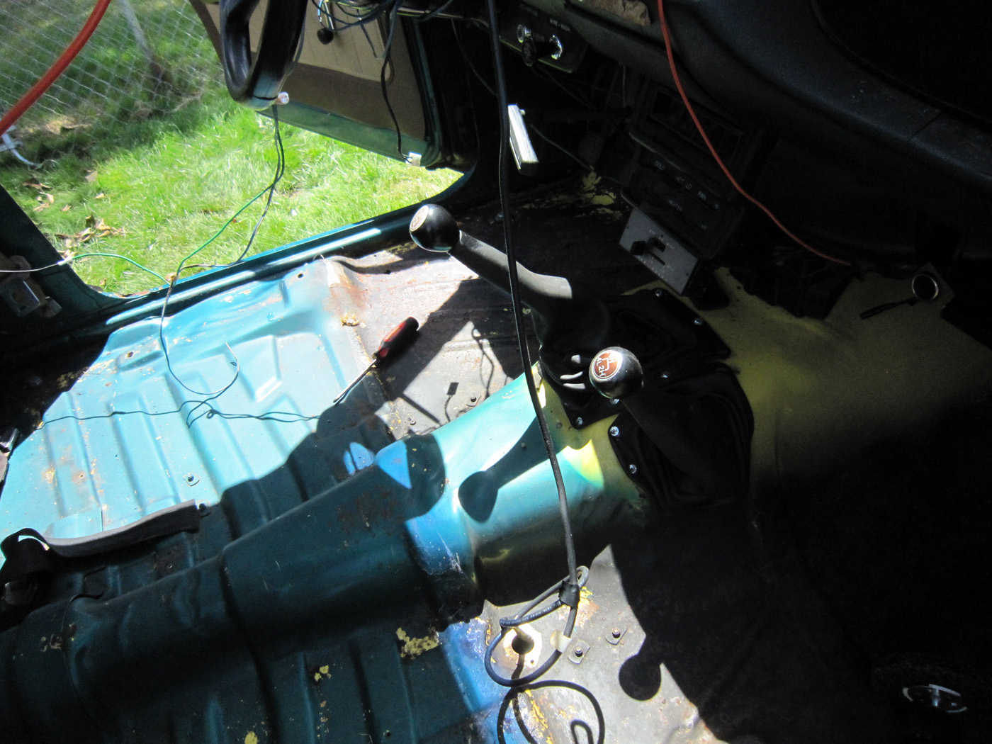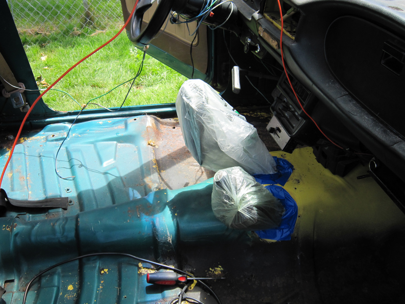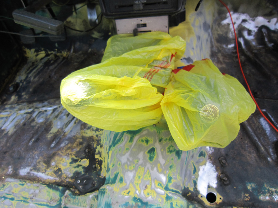 I was pretty happy with the texture of the first coat. I figure all the whining I've heard over the years about excess spray buildup was probably from people who did not read the instructions. Shake the can for two minutes before use and only apply on low humidity days between approx 70 degrees farenheit to some higher number than my climate gets ever. I left my sunroof open for ventilation but closed all my windows and the door I was not standing in. That brought the temp from about 65 outside to a perfect eighty degrees or so for curing.