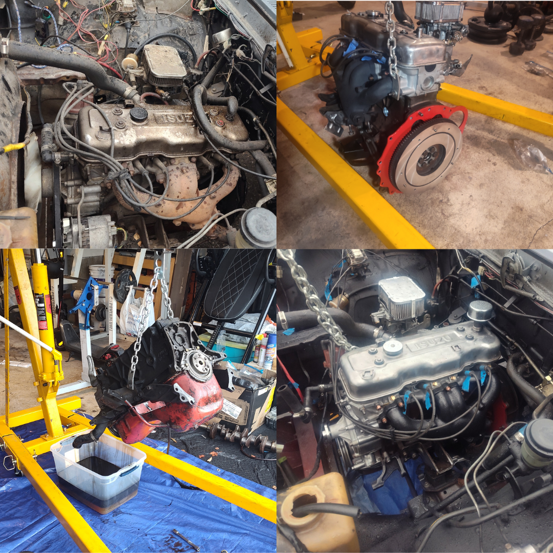 Engine rebuild step by step. I'll start out by saying that this rebuild took about 3 months, much of that time was spent sourcing hard to find parts. My original head was warped beyond repair, the second head from the donor engine had gouged and damaged camshaft journals, I managed to get a third and in good condition head from another LUV enthusiast who I follow on Instagram big shout out to @luv_project_ on Instagram for the head and the guidance. My original engine block was good but the crankshaft, connecting rods, bearings were all completely shot. I managed to source new connecting rods from Engine Rebuilders Supply (ERS) based in Troutdale, OR. The third head may have been in good shape but the camshaft needed a grind so I Sent it off in the mail to DeltaCam based in Tacoma, WA to get grinded. I sourced new main/connecting rod bearings, 20 over pistons/rings, intake/exhaust valves on eBay, another source for them is Clegg engine but they're a bit more expensive. I sourced new water pump, new engine gasket kit, new oil pump, and new timing component kit on rockauto.com.