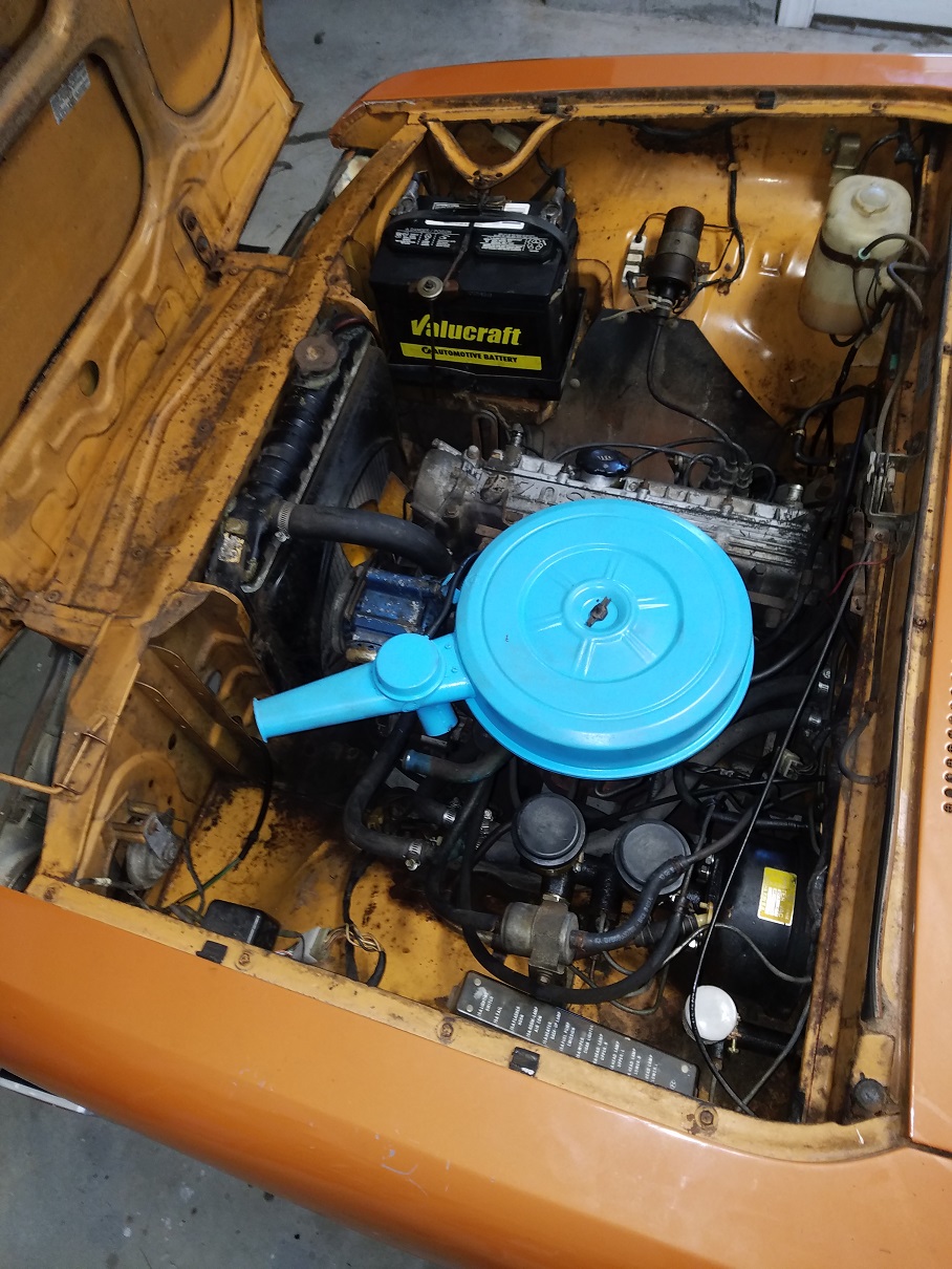 I think I may have it figured out. I still have one vacuum hose (the smaller diameter hose, looks like the other ones are heater hoses?) that comes out of two places next to each other in the air cleaner bottom assembly and then is missing the rest after the two join together. Don't know where that one might plug in. Anyway, seems to run pretty well, could use a carb rebuild, maybe ignition conversion, etc. but that's for later on, it's a real hoot to drive and my 12 year old son loves it. I threw in come carpet, a little plastic filler on the floorboard, dash cover, hubcaps, and did a little rattle can resto. If only the radio worked ..........