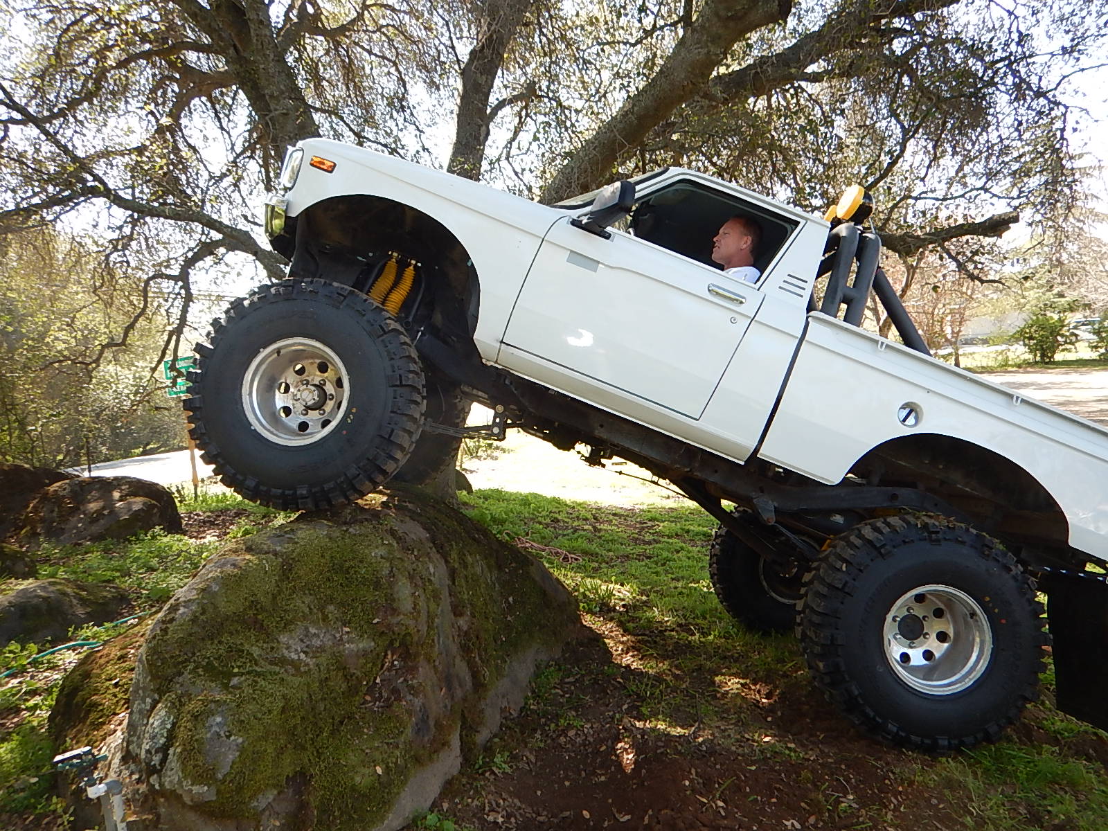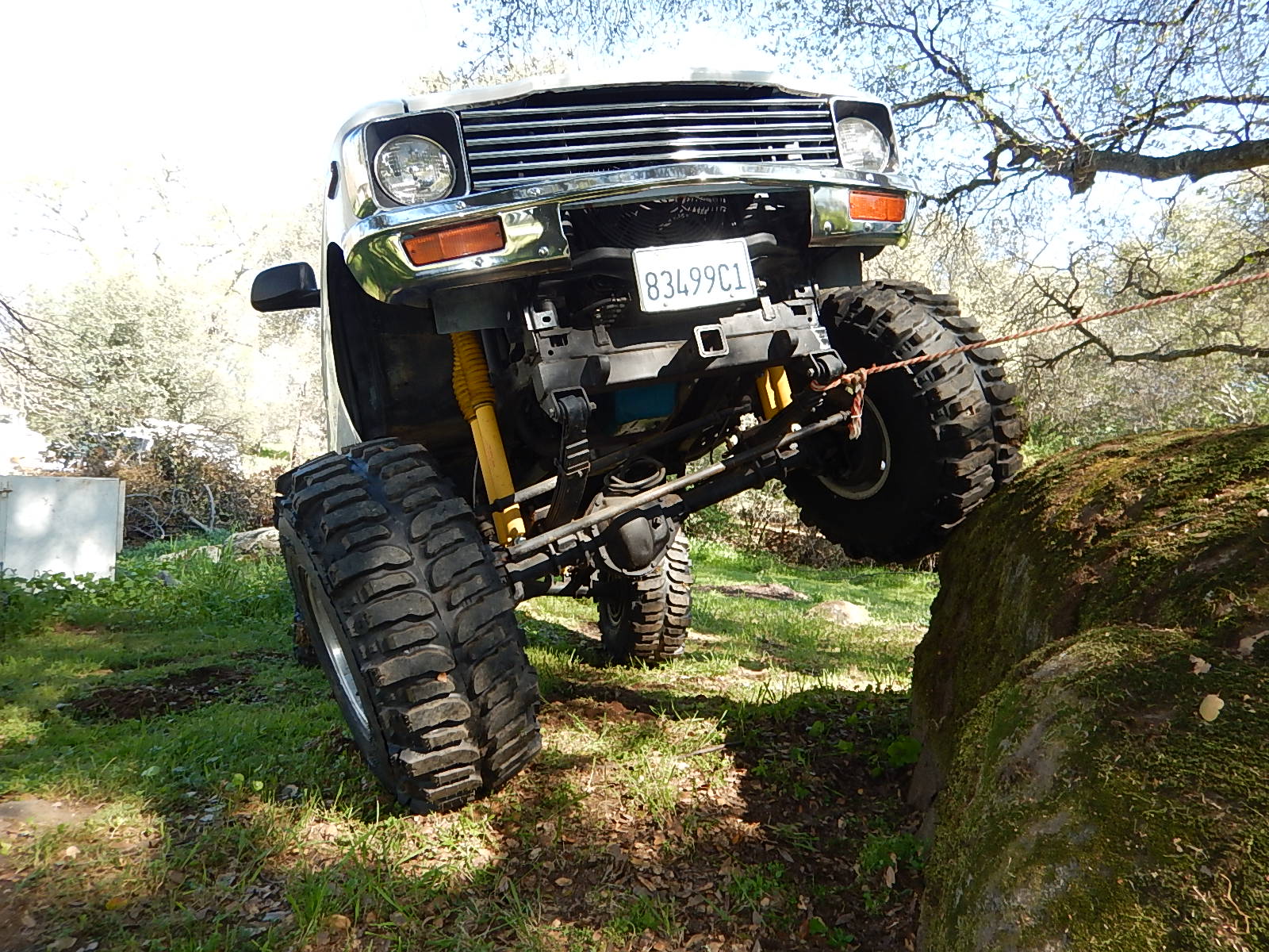 I have a 1973 (Titled) Fleetside Chevy Luv with 1982 Evenfire Buck V-6 (Aprox 30K Since New) rebuilt 2bbl Carb, P/S Pump, Alt, 14" electrical Cooling Fan/Cored Out Chevy Luv Radiator with Auto Off-On Temp Switch. Motor is mated to 700R4 Automatic Trans Mated to A Model 20 Transfer Case. New Front/Rear Drivelines, Front Dana 44 Axle 6-Lug (60"S Wide With 1.5" wide wheel spacers) 4.88 Gearing with Limited Slip, Parks Mike Crossover Steering, all new wheel bearings and upper/lower ball joints, rotors, steel braided brake lines, Rear 6-Lug Tacoma 60" wide with New 4.88 Gears and Factory E-Locker (with new 12 volt Guy E-Locker wiring Harness) 37" Super Swamper Boggers mounted on 15 x 12 Alloy Wheels, Kc Daylighter Smiley Face Fog Lights and covers, Retro Smitty-Bilt Double/Single rollbar and a windshild sun visor.