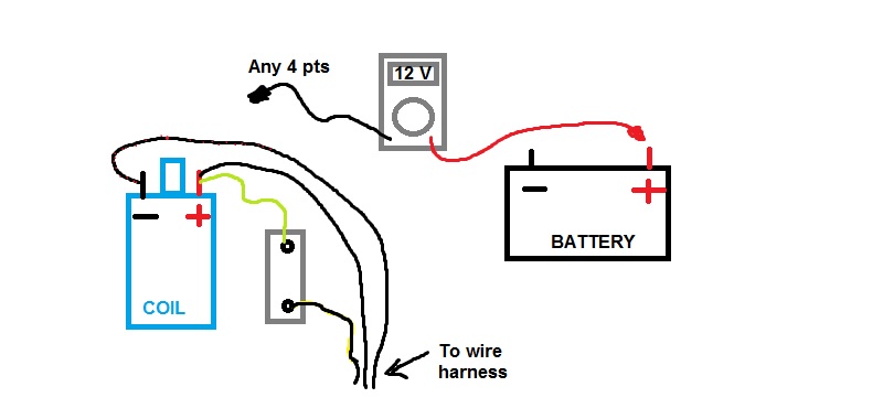 Does my wiring seem to be ok? I got new coil and Ballast Resistor as having issues with starting the truck after the new Weber 32/36. I tested the wiring with my multi-meter and I am getting 12V at all 4 points (2 points on coil and 2 points on ballast). I keep the red wire on the battery from MM and the black wire to each point and I get 12V is that right? seems like the Positive (+) on the coil should be 0 with the red wire from MM touching the + on battery, but I get 12V thinking that the Coil + is being grounded. Can any one clarify?