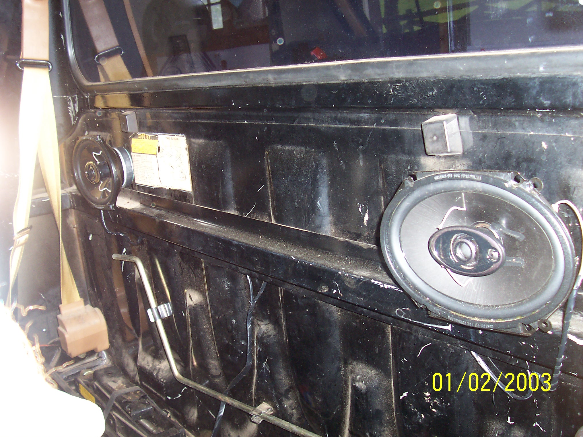 On the space below the glove box, i put in a Sony CDX-F7005X stereo. Its pretty cool, has a remote, am fm, cd player, and the best part would be the aux connection in the back. For the front, I used these speakers i had from a home theatre system i had which was busted. I managed to put four 4-inch speakers on the sides, behind the seat and a ten inch woofer and amp behind the seat. And still managed to keep room for the jack, rod to bring down spare tire, jumper cables, tire irons, and a bag of tie-down straps. I'm a six foot-300 lb guy, and still fit pretty comfortably in the truck. I guess the best part of it all is that I kept the original AM stereo!!! :D