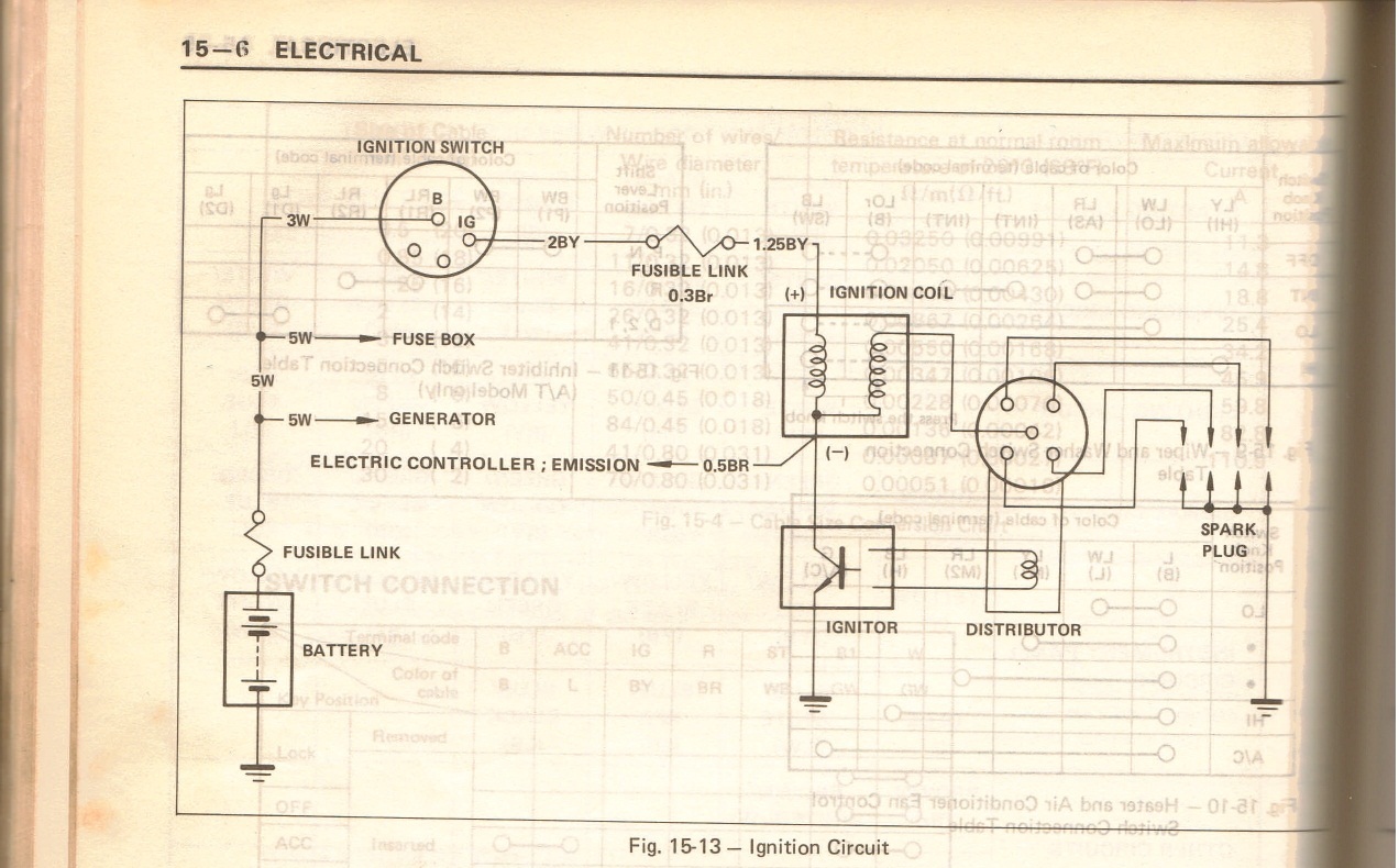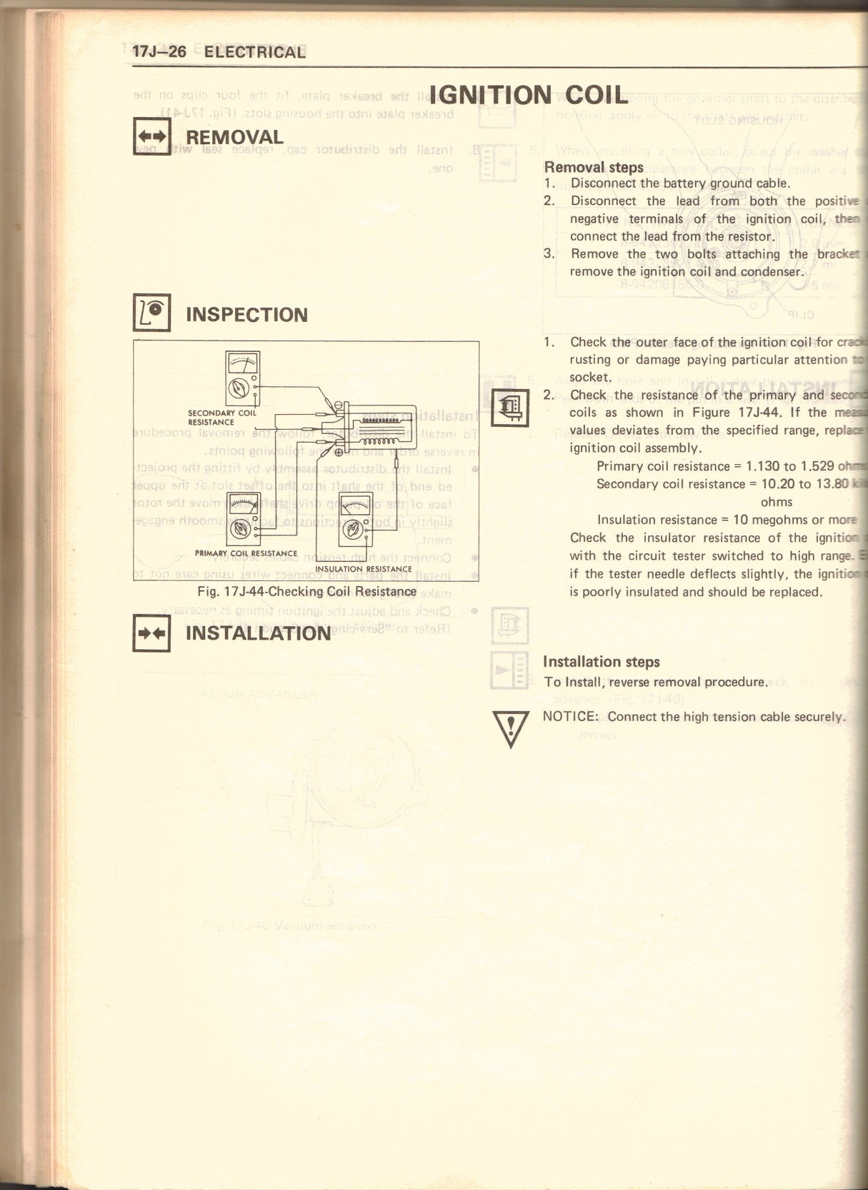 3. Ohmmeter set to x 1 ohm or x 10 ohm connect the probe to terminals between the pick-up coil and ignitor [White wire = Pos(+)/Red wire = Neg(-)]