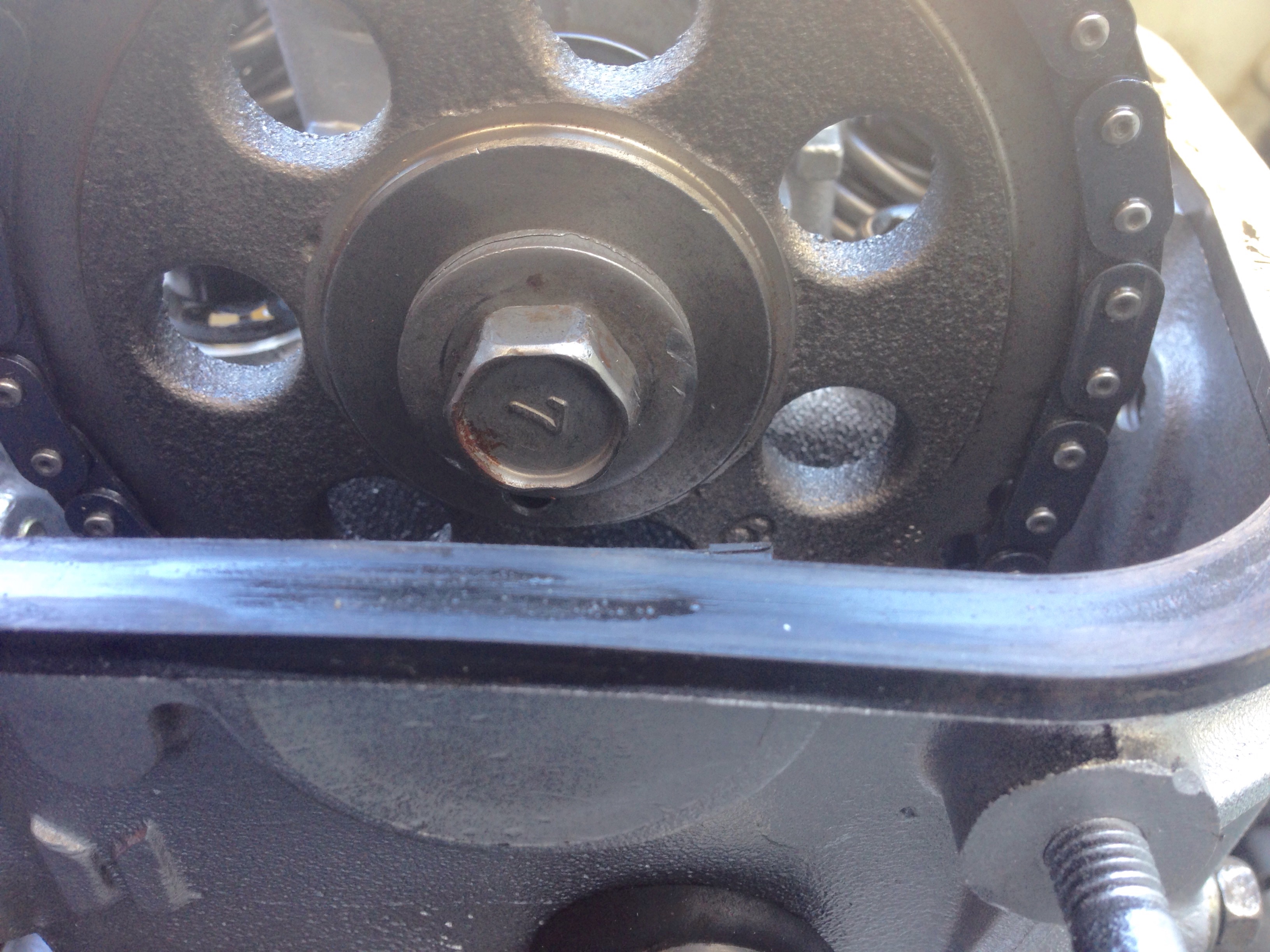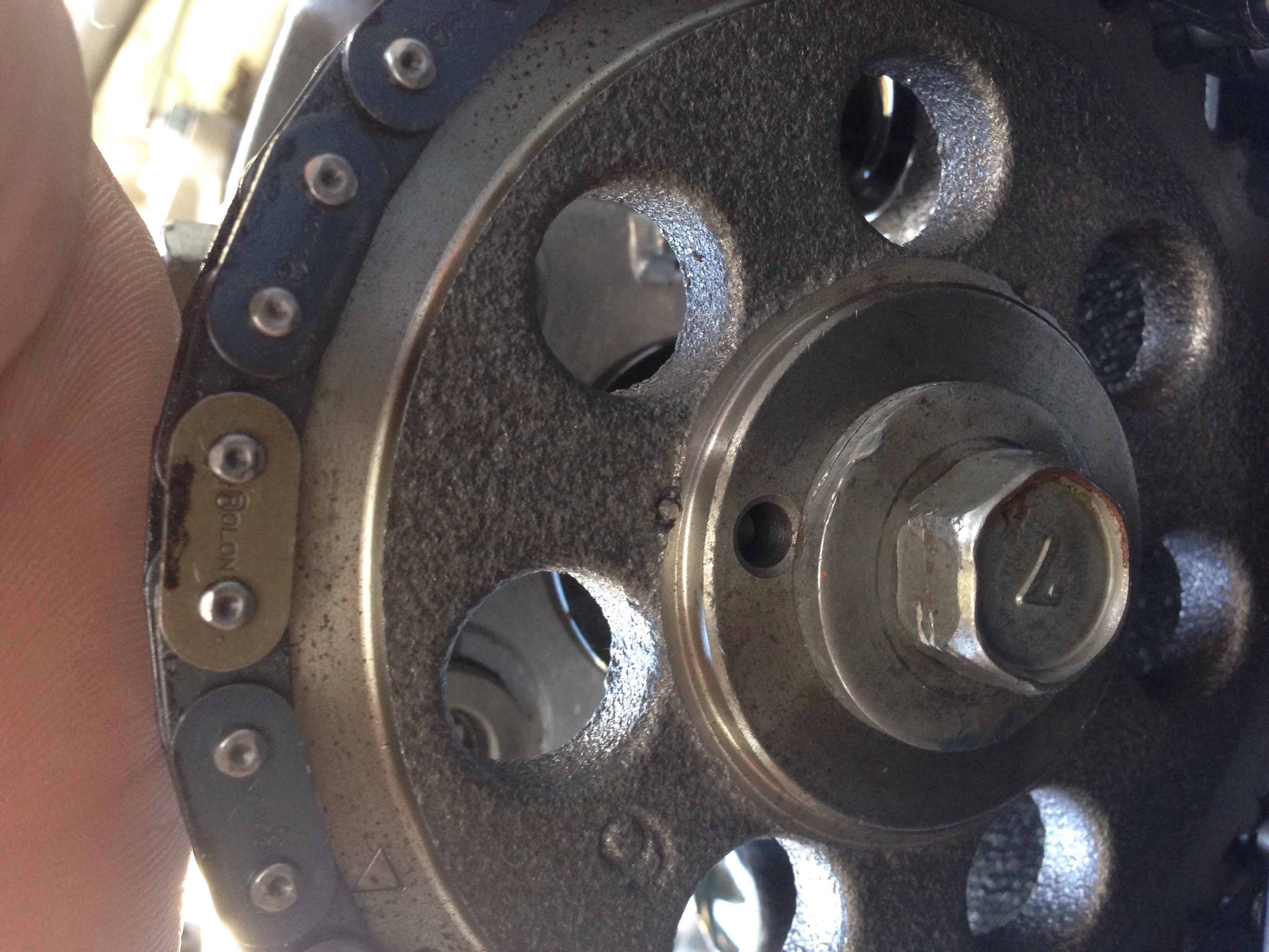 Took off the cam cover to check timing marks and noticed the time chain is not aligned with the mark on the sprocket see pic