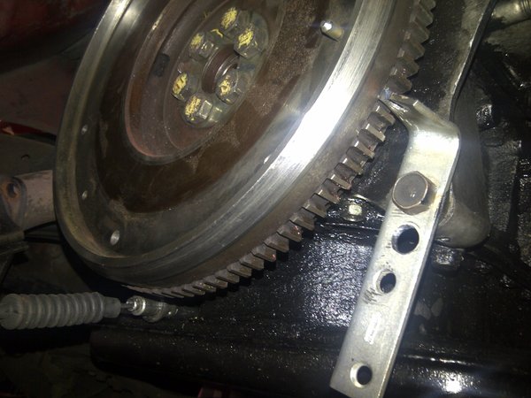 Do you mean that you used the l portion of your bracket to engage with the flywheel? Wouldn't that risk breaking the teeth?