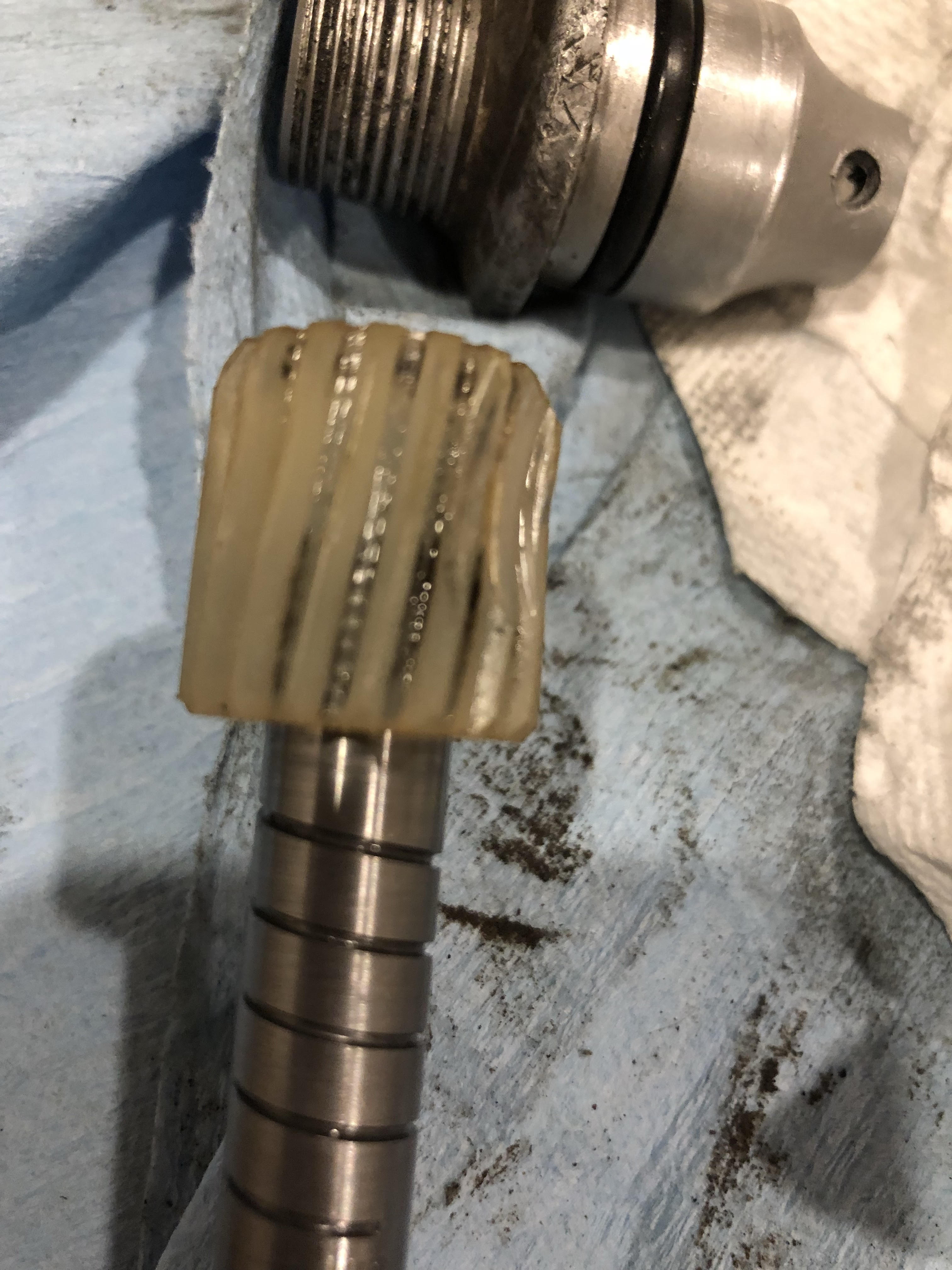 This is the first time I've pulled a speedometer gear. My speedometer hasn't worked since I bought the truck. The previous owner installed a digital speedometer and sender. It looked like transmission fluid is leaking from the speedometer sender so I thought it might have damaged it. I pulled the digital sender, hooked it up to a meter and spun it with a drill and it looks like it's still working. So next I pulled out the speedometer gear and noticed it's worn. My question is, do you think this amount of wear could stop it from spinning?