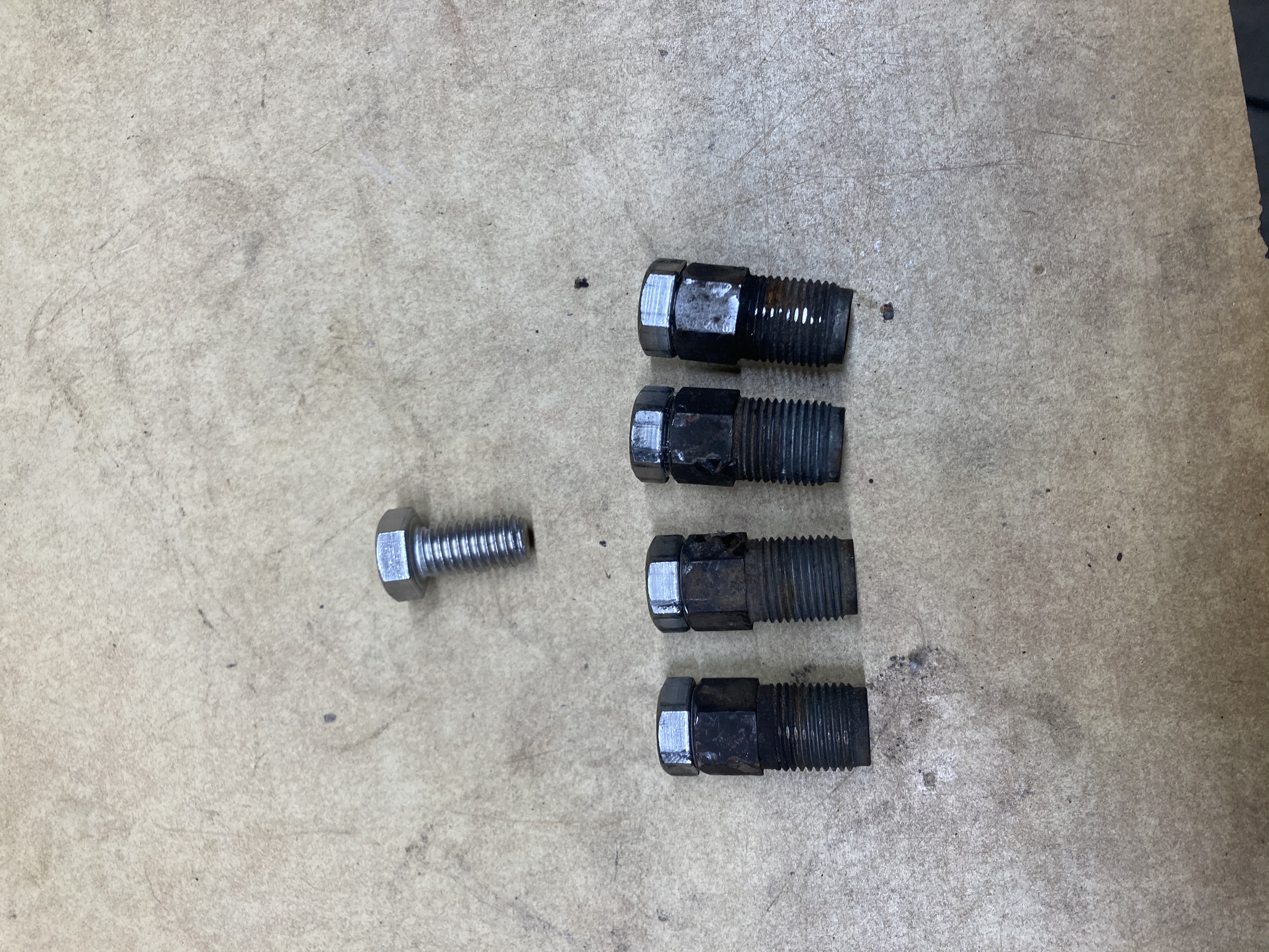 I am rebuilding my G180, and deleting some emissions systems. I thought I’d share this technique with those who are finding trouble plugging the air injection holes in the head. Being that the holes are an M14x1.25, finding a bolt to plug it is difficult. So I just cut off the plugs, and used an impact to pound a 3/8x16 bolt into the middle of the plug. It had the same 14mm head, and I didn’t even tap it. Maybe not the most airtight, but an easy fix nonetheless.