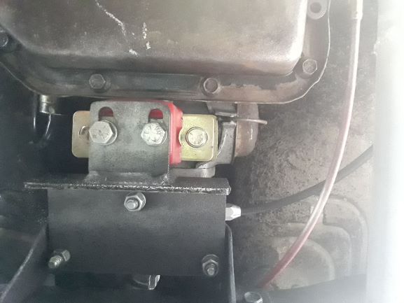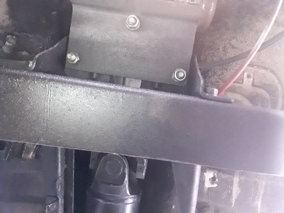 A couple pics of my fabricated tranny mount. Just a couple more pics to look at. Had to crawl underneath the truck to take them. Also a pic of my battery where fuel tank use to be. Now have fuel cell tucked up under the rear of the bed.