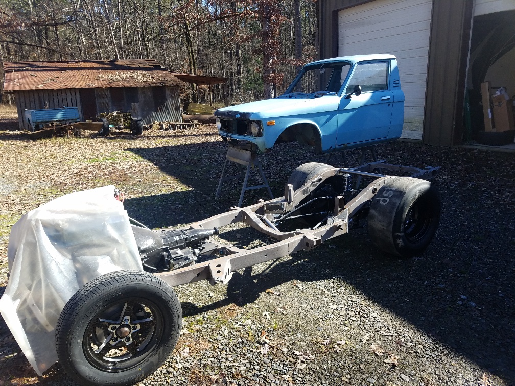 Got it on all fours! Have to finish the brake and fuel lines then fit cab and bed. Liking the way it's turning out!