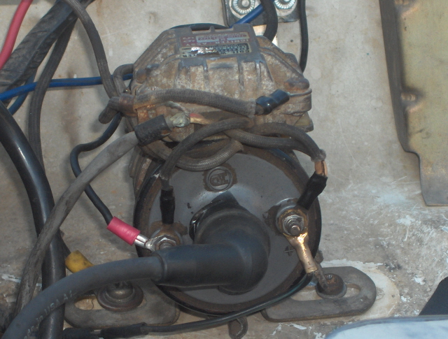 Finally take that yellow wire and get it hooked up to the power lead / ignition wire (this is the small black wire that has a red strip that was bolted to the side of the olddistributor).