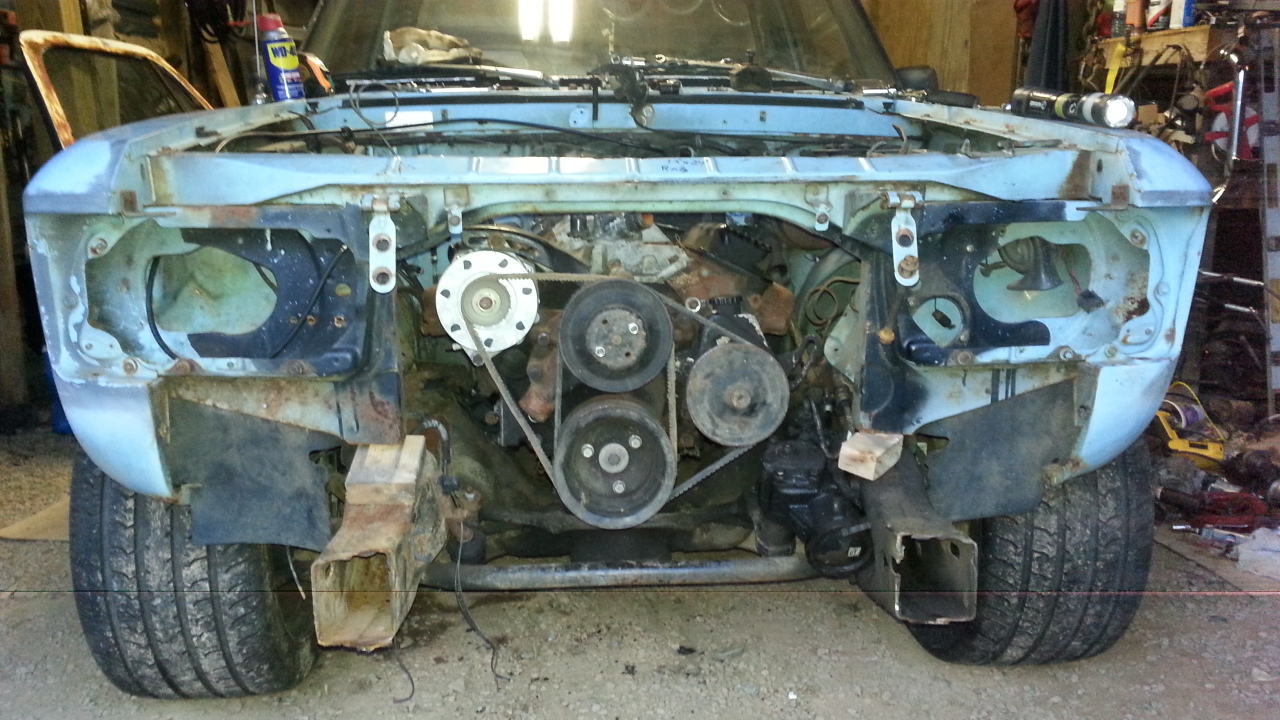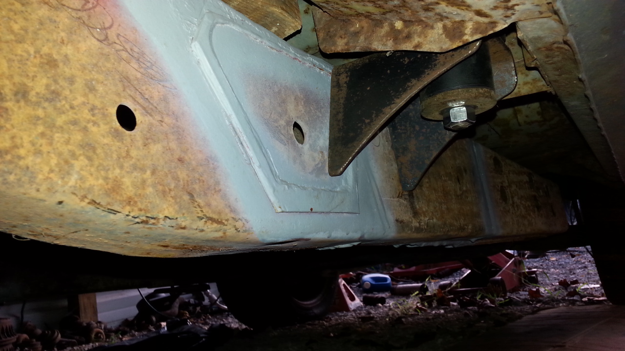 Well I haven't mounted the body to the frame yet. I put a 1994 350 with a wimpy S10 T5 in it to get clearance for everything before I make the cab mounts. I will have detailed pics of how I mount it to the frame in a week or 3. Wrist surgery Sux.