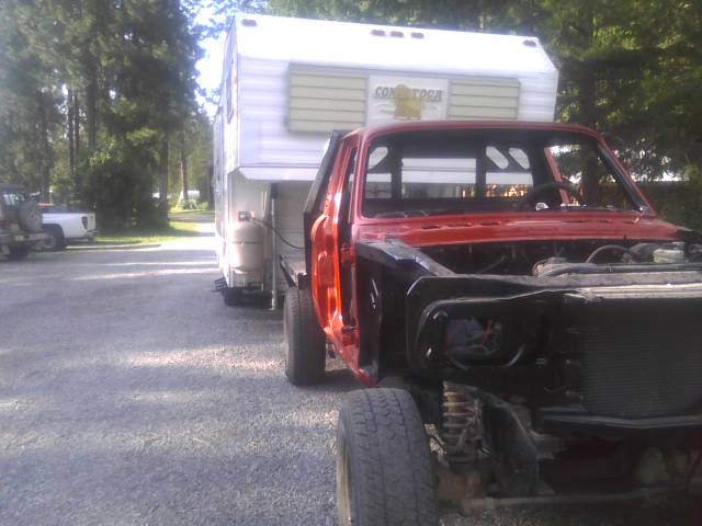 Well its been a while since i posted anything. havent got anything done! But i had to move my camper so i could move it today, and my foks had the dodge. So my luv got to pull my camper over to the shop! No problems what so ever! (Its been 3 weeks since i started it last to)