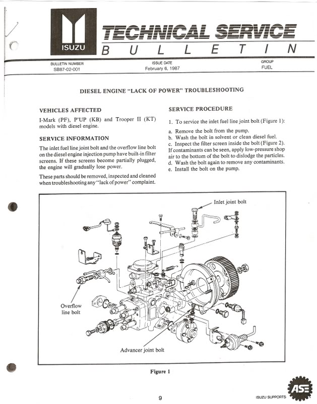 However, if the key was in the "off" or "acc" position when you used the bulb, it's normal to fell this resistance because the cutoff solenoid is "cut off". That would be my next thing to check. The cutoff solenoid should be the only thing on your pump with a wire attached. To bypass it, remove it from the pump and then remove the plunger and spring. CAUTION: the plunger and spring tend to remove themselves, so don't lose them! Re-install the solenoid without them. Just be aware that if it starts, you will need another way to shut it off because the key won't turn it off.