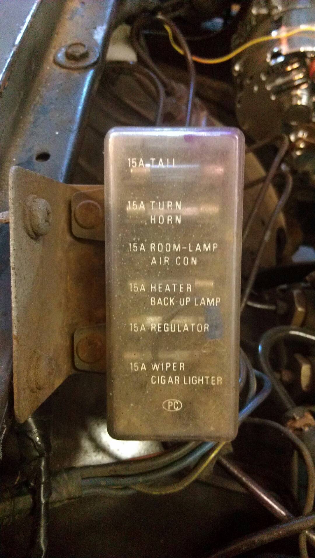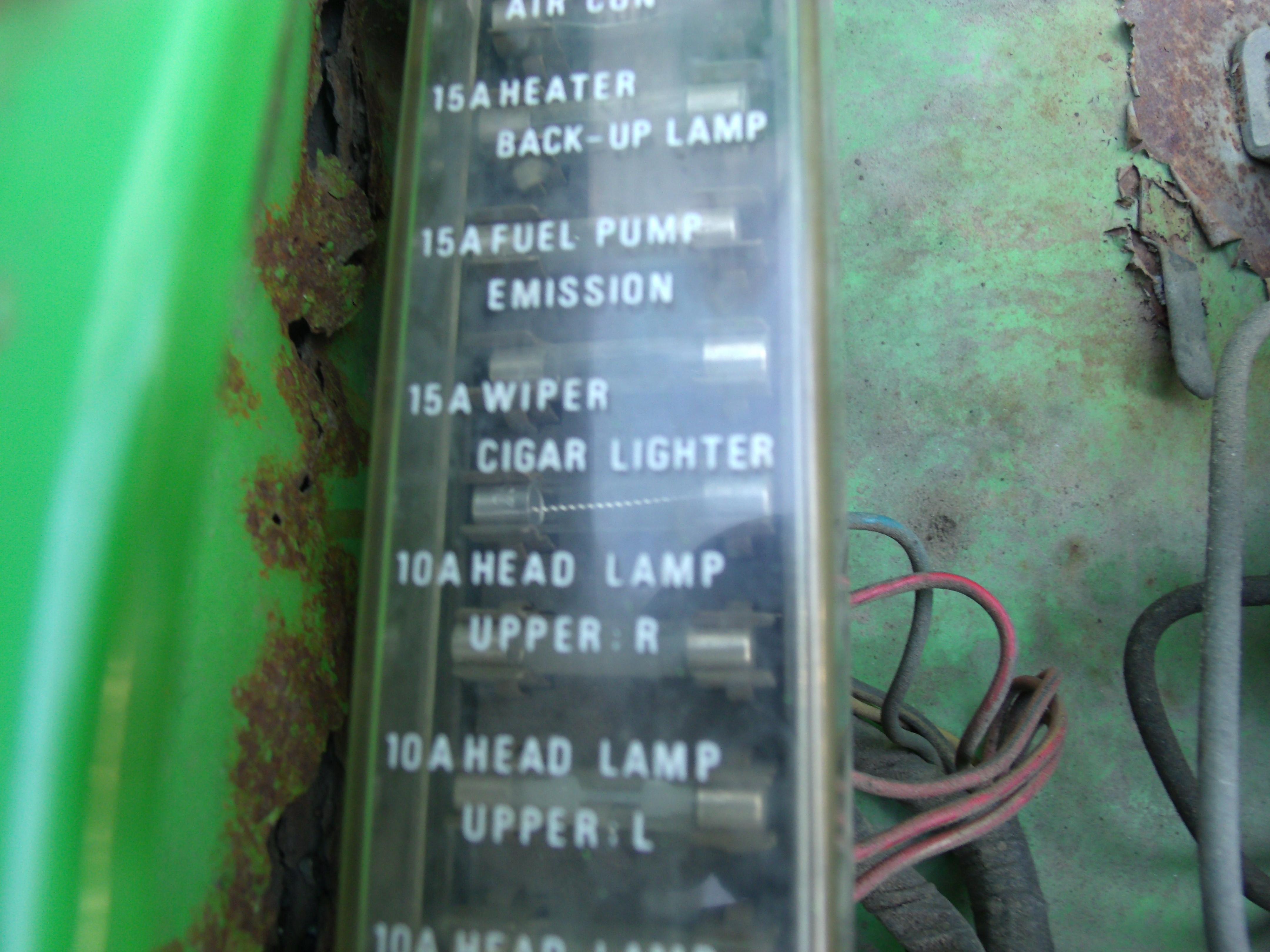 Any one have a pic of the stock 76 fuse box cover? I need to repair my fuse holder, and there is no cover with. I would like to know what is what before I start fooling with it. Thanks...