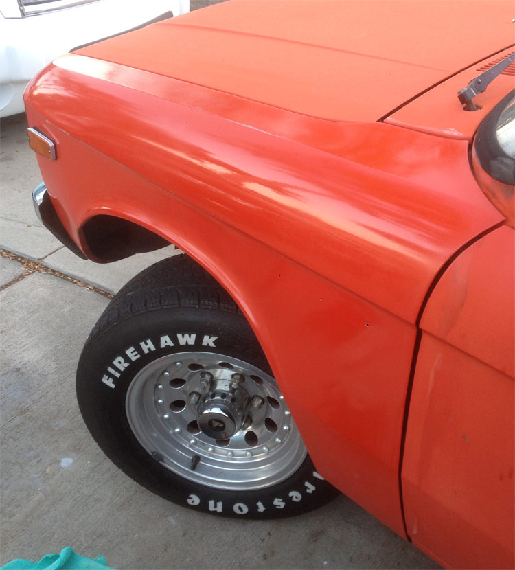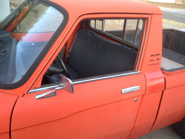 I wasn't going to start a thread for this truck but it looks like I am going to hang onto it so what the heck. I haven't had a stock Luv since 1983 so the G180 is something I am not that familiar with. I didn't know much in the 80's about working on cars and trucks, I mostly drove the crap out of them. I stumbled on this truck on Craigslist and it hadn't ran in 2 years but was all there. A young guy owned it and said he had replaced the fuel pump and filters and couldn't get it to run anymore. A mechanic didn't help, so it sat. The motor is supposed to have been rebuilt and the clutch was replaced also. It came with a spare G180 that also looks to have been rebuilt at some point too. I charged up the 2 year old battery and poured in some gas and she fired up then died. I found fuel got right up to the carb but none was getting in the float bowl. Using the forum I found the thread about the fuel inlet valve sticking. 5-6 taps to the inlet valve and she fired up without a splash of gas. I have been driving it up and down the street for the last week or so and it runs like a top. All it needs at this point is tires and a smog check. I found a ton of receipts in the glove box from the owner before the last guy for a new trans and clutch, paint job (1999) and interior. The paint looks like my blue one did when I got it so I think I can polish it out a bit. It is a Maaco paintjob and it is a thin coat of paint. I did sell the perfect rear bumper to lower my purchase expense but I have an old dirtworks bumper for it on my trailer. So far it is fun to play with and seems like a pretty good truck to work with.