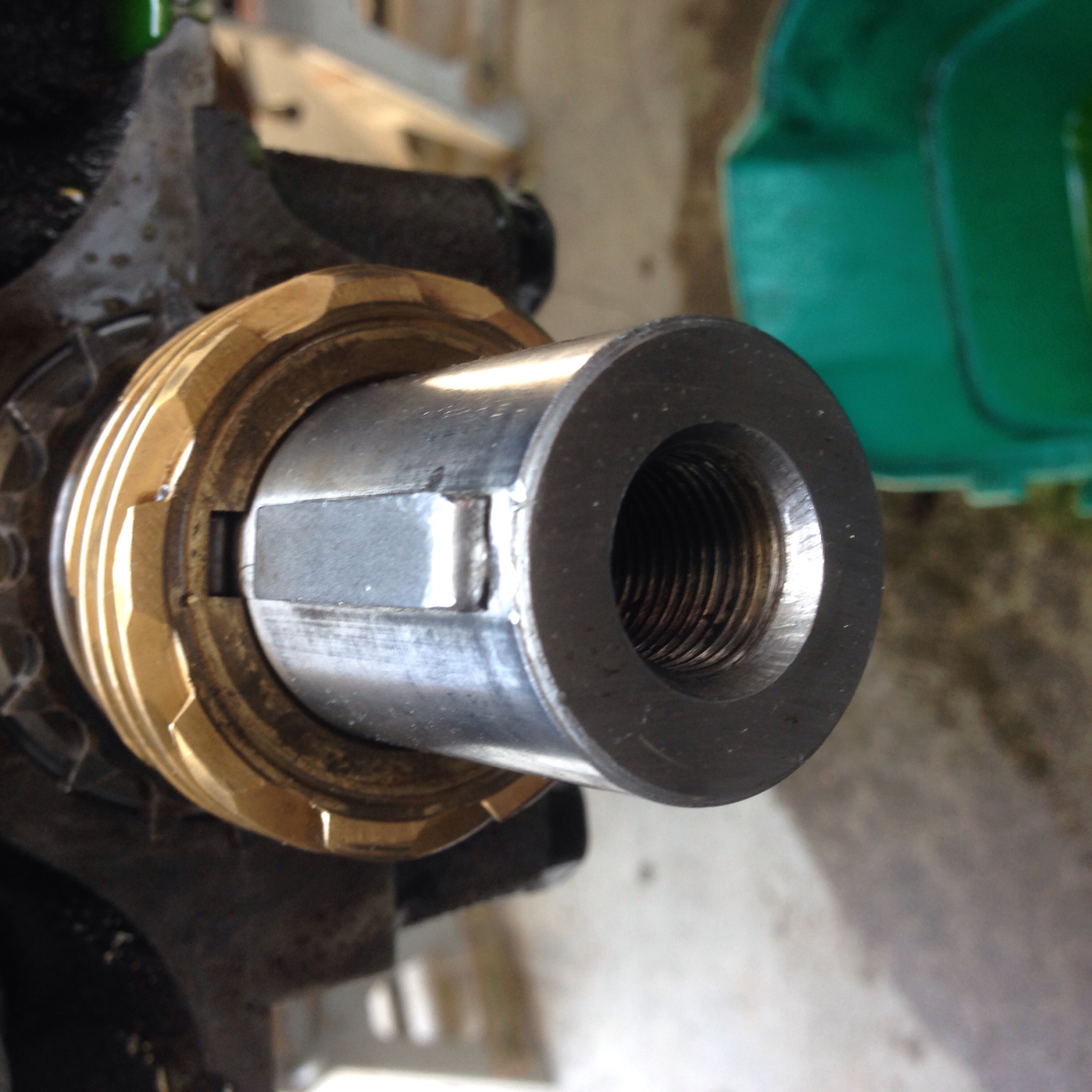 Trying to fix my screwed up timing chain and pulled the front cover. Looking for the timing mark (slit) on the crankshaft. Is this it?