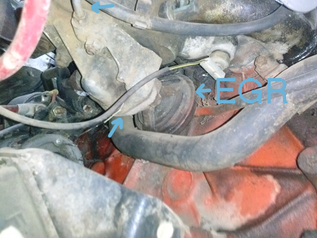 In the Top picture, I found the EGR Vavle. Notice the very bottom arrow, it points to where the EGR valve bolts on.