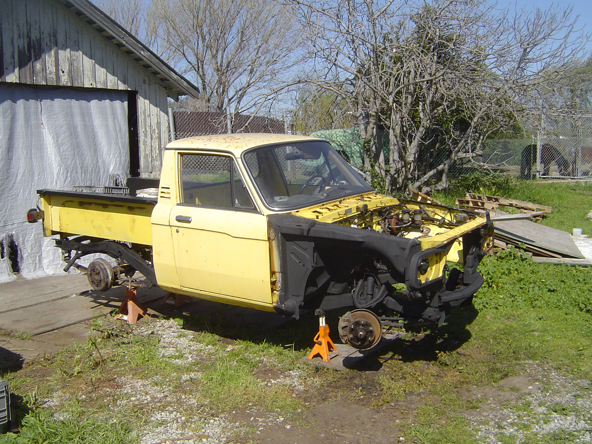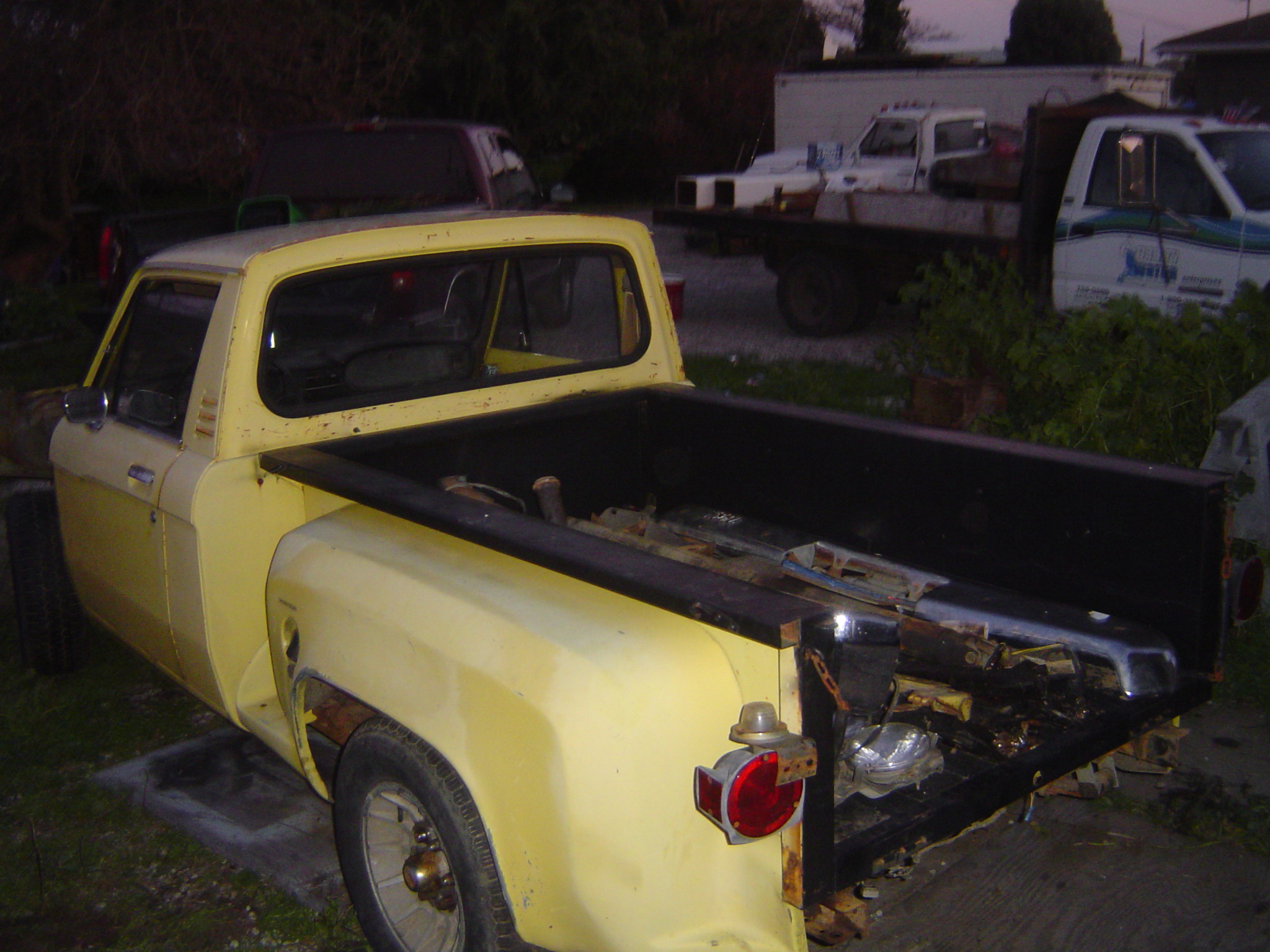 these "OUT IN THE SUN PICS " were on the Craigslist ad i had seen & is exactly what i had to start with. This truck was a mess. but the body was complete &all i neede was the running gear WHICH I HAD :D
