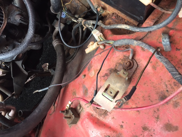 Hello could someone that has done the Pertronix electronic ignition conversion with coil (no resistor) please help me out. I took my distributor to a auto electronics shop, he installed the parts had me look at the unit functioning while on his tester machine, it worked fine as I could see the spark as he rotated the distributor gear so half my battle is over now that I know it is functioning properly. Now I have a wiring issues and need some visual help with. Before I took out the distributor, old coil and resistor, I took extensive close up pictures of the parts and wiring so I could refer back to them during the reinstall but unfortunately the phone that I used to take the pictures was stollen so now that I want to reinstall I have zero pictures to help me out and since it has been over 8 months since I started I can't even begin to remember what wire goes where, I wish I had also marked the wires but stupid me I didn't. Would someone please post a few pictures of your coil and distributor with a visual of where the hooked up wires are please. Im totally not a electronics guy at all so the more detailed pictures the better, pictures for super greenhorns. I have a total of 4 wires in the general area, first one closest to the passenger fender well is coming out of the wiring bundle case and is black/yellow stripe the next two are coming out of the same wire bundle casing but about 6 inches further down, one is black/blue stripe and the other is black/red stripe, the last one is further down on the same wire bundle but passes through a white plastic electrical connector before it comes out in the bundle and its also Black/red stripe. Lastly, what is the red wire that comes off the positive battery terminal wire bundle and connects too a small rectangle 2 prong screw box on the fender, the second prong connector has nothing attached too it, this red wire is visible in my pictures. Could someone please tell me which wire go where and explain it too me as if I'm a total nob, in this situation I totally am so no worries. Thanks in advance, the help will be greatly appreciated.These pictures are of the engine bay taken from the passenger side front fender, the distributor and coil are not in the picture nor are any wires from them.
