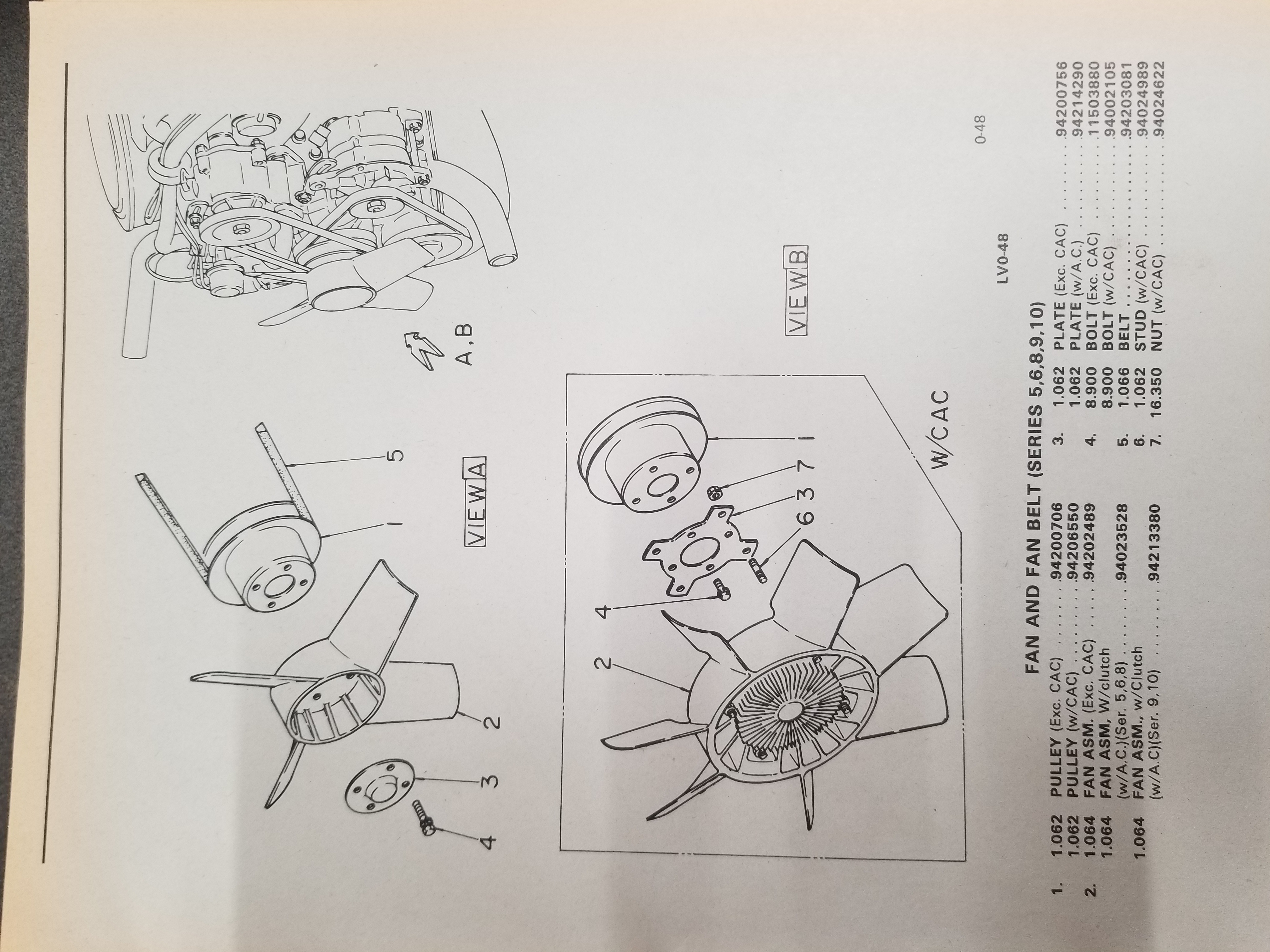 A/c trucks had a fan clutch. Non a/c had no clutch and a fan with fewer blades. I'm thinking that's where the problem is. Different style fans have different thicknesses.