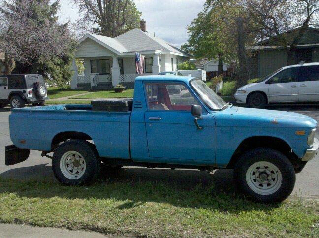 Well, I was finally able to do it! Got a 1979 LUV 4x4 - and MAN, am I excited! I hope this isn't sacrilegious to say, but I know almost nothing about how cars work, but I *do* love my LUV, and I'm ready and willing to learn! I took her into my mechanic (whom I've know for years and trust beyond trust) and he fixed a few things wrong with her - 2 plugs with bent electrodes (Ok, I probably coulda done that one), alternator wire missing, cracked distributor, am having the carburator rebuilt, and a few other things...but he said I need a driveline. Apparently, since it's a 4x4, I can still drive it (he said it goes like a scalded cat now), I just can't use the 4x4 until I get a proper, "new" one in. I've searched the forums, with no luck, and I'm not real sure what I can swap it out for - from what I can, perhaps an '84-'86 Trooper II? Anyhow, Hi everyone! I don't know squat yet, but I'm gonna learn!