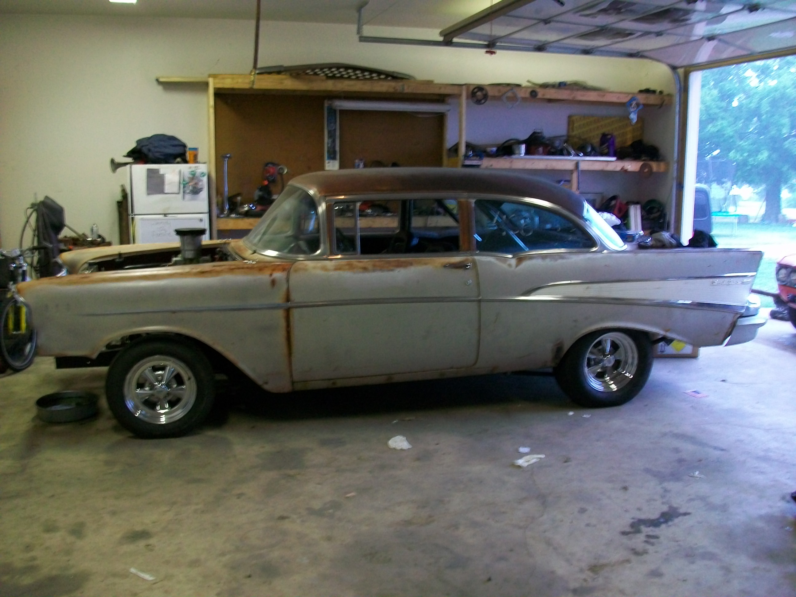 pics finnally . . these were from this morning . . thick fog for mid summer in oklahoma . . . kinda mess inside my kids have been playing in there with the tools i took to the strip !!!