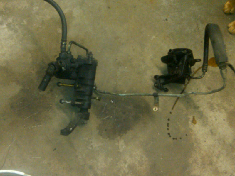 The box, pitman arm, adapter collar, resevoir, and pump looks ok but I have a funny feeling the rest of the parts I have differ from the parts shown in the above photos. The presure line on mine has a long steel tube that runs from the pump down to the lower rad support, then accross the front of the engine and up to the box. The steel tube portion of the pressure hose is like 2 feet long! Does this sound right? Also, my Trooper donor truck was missing the smog pump, two of the brackets were still there and I pulled them, will the smog brackets from my original 1.8 work for the swap or do I need to use the Trooper brackets?