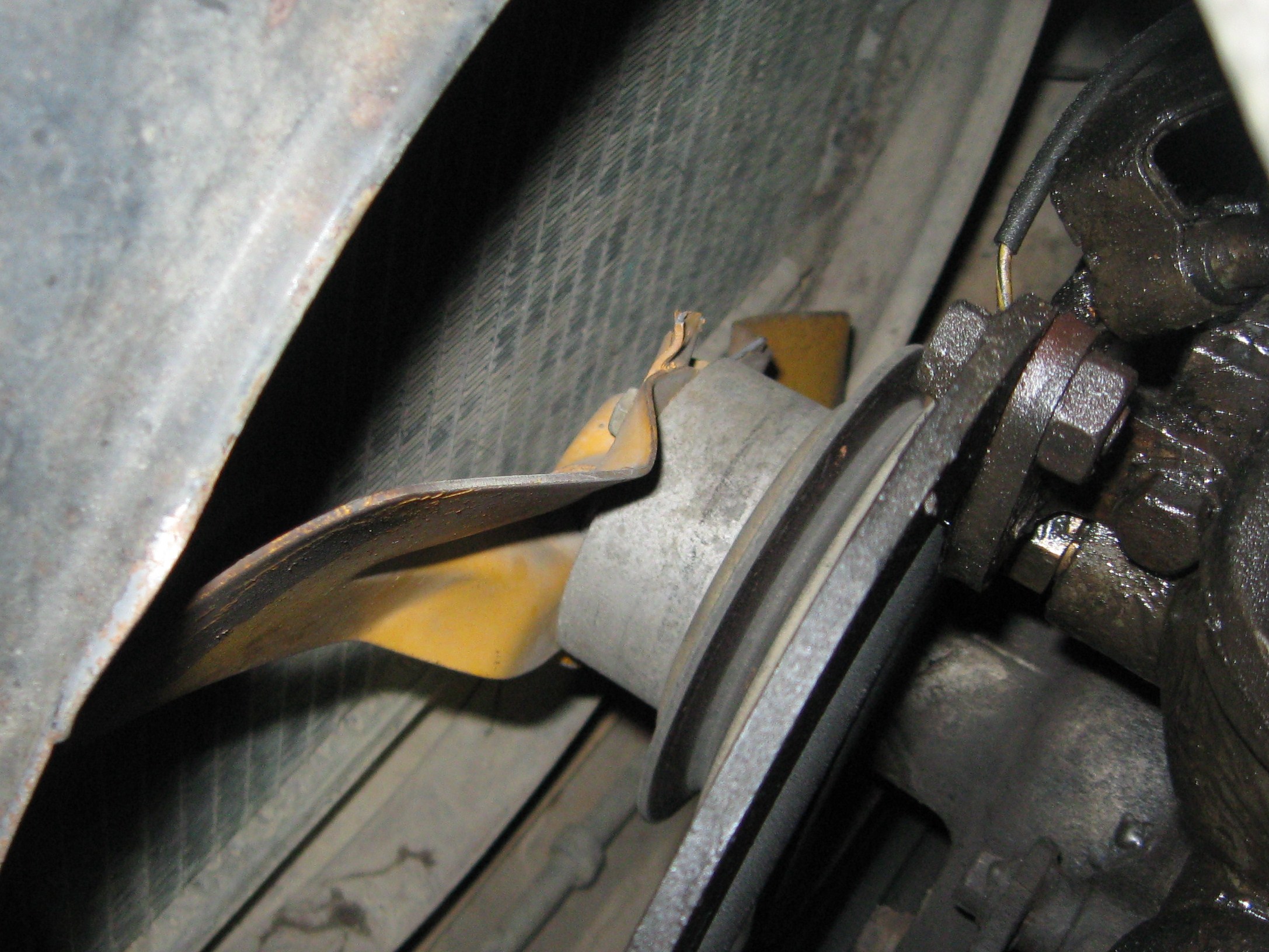 Thats kind of how I brought it home.. I drove it like that, with no fan.. :D I would have probably kept on driving it like that, but I didnt trust my water pump anymore and that leak in the back sure wasnt helping either.. :evil: