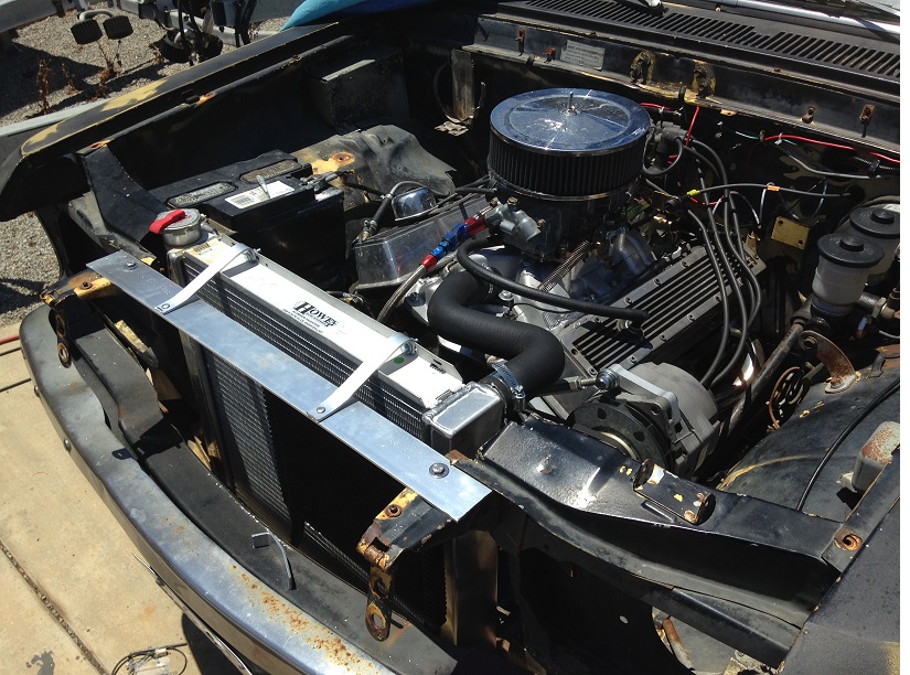 Hooker headers clear nice, radiator set up is great, welded on new brackets for the tube grill and mounted it. Need to replace a couple lights and align them.