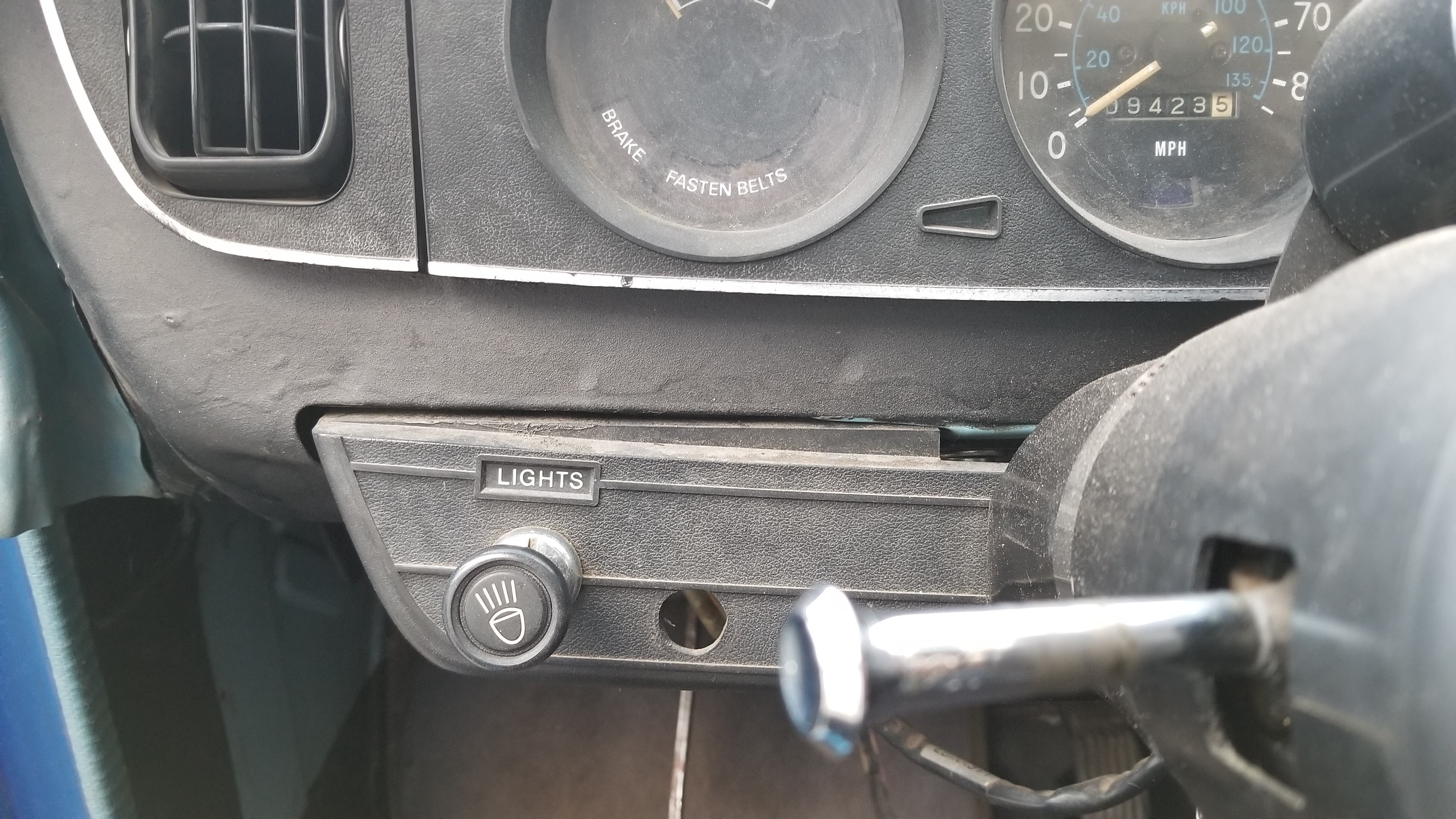 Anyways, adding some interior "before" shots. Main notes in here; 1) Seats are worn to the bone, going to look at replacing them with thin 1 piece buckets (hoping to gain that extra 1" of leg room). 2) current gauge setup is super clunky, plus of the stock gauges the speedo is way high, fuel gauge is pretty much useless (might be the level sensor here? Shows full until you burn about 3-4 gallons then swings wildly about for about a gallon before resting on empty. Oh and stock temp gauge doesn't work but aftermarket one does; I'm guessing the prev owner swapped the wiring). 3) Stock shifter leaves a lot to be desired in both style and feel (actual trans engagement feels nice and notchy but the neutral engagement & precision is just off. Might just need bushings somewhere?). Would like to go lightly weighted here in the future (I'm guessing the shift lever is fairly standard?)